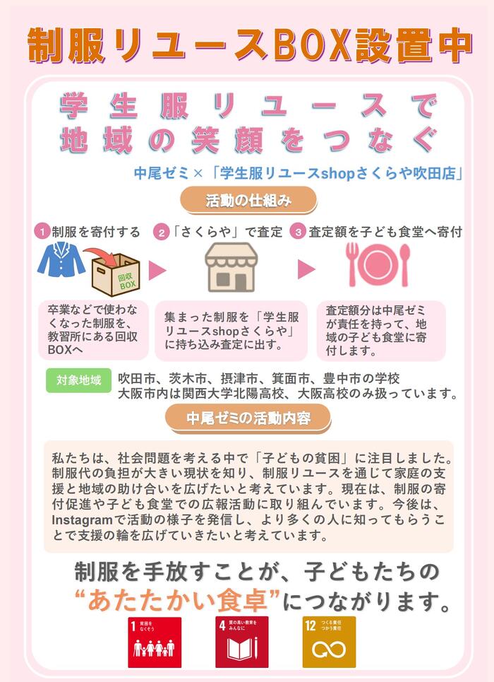 【学生服回収BOX】を豊中教習所に置かせていただくことになりました
