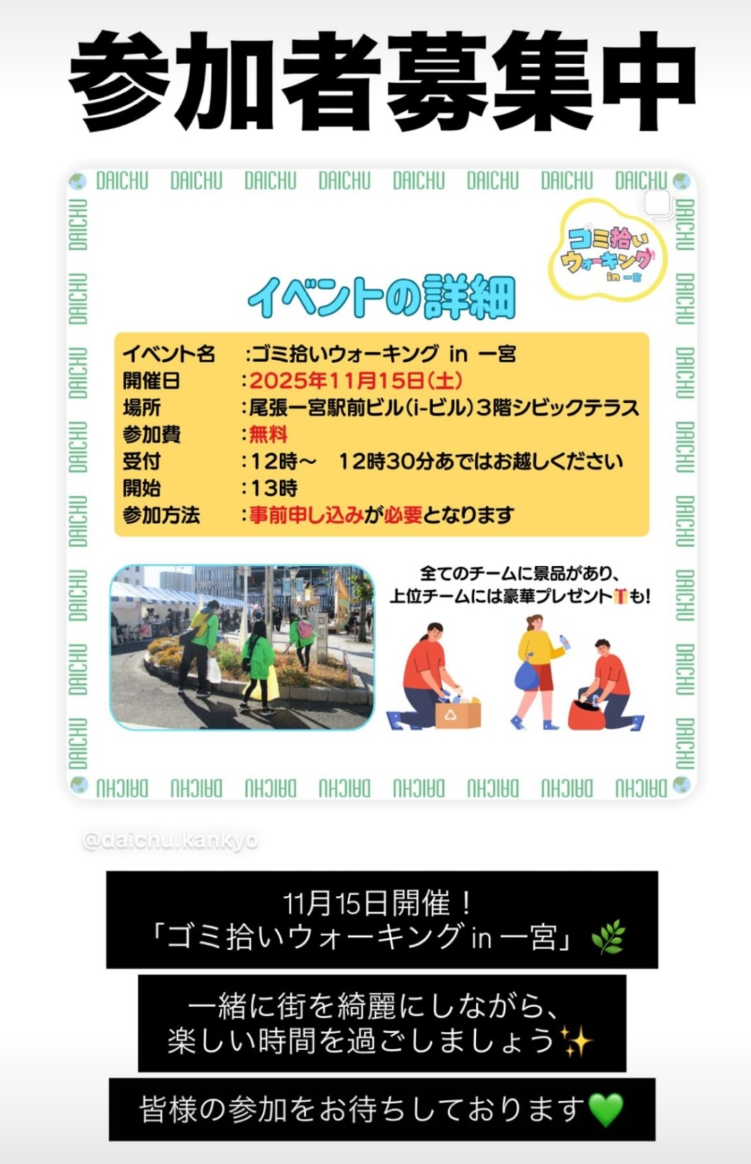 #株式会社大中環境 #大中環境 #一宮解体 #愛知解体 #岐阜解体 #三重解体 #富山解体 #福岡解体 #ゴミ拾いウォーキング #ゴミ拾い #ゴミ拾いイベント #参加者募集 #sdgs #エコイベント #社会貢献 #無料イベント