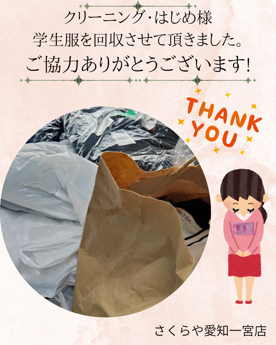 引き続き、クリーニング・はじめ様店舗にて回収しております。お近くの方ぜひご協力お願い致します。
