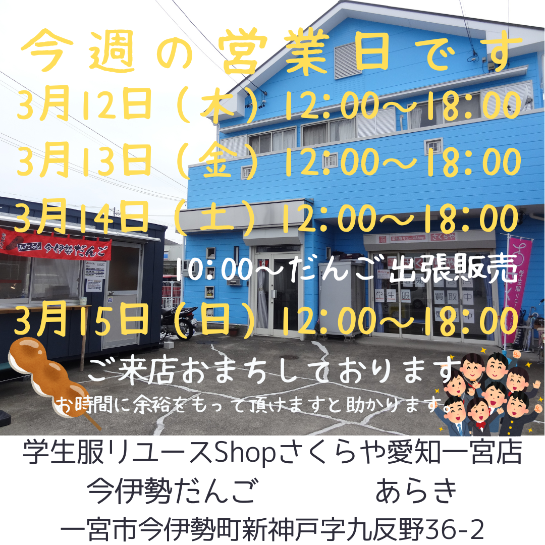 ☆愛知一宮店☆木曜日から日曜日 お昼12時から18時まで営業中です。絶賛買取・販売中です☆今伊勢だんご1本80円です!