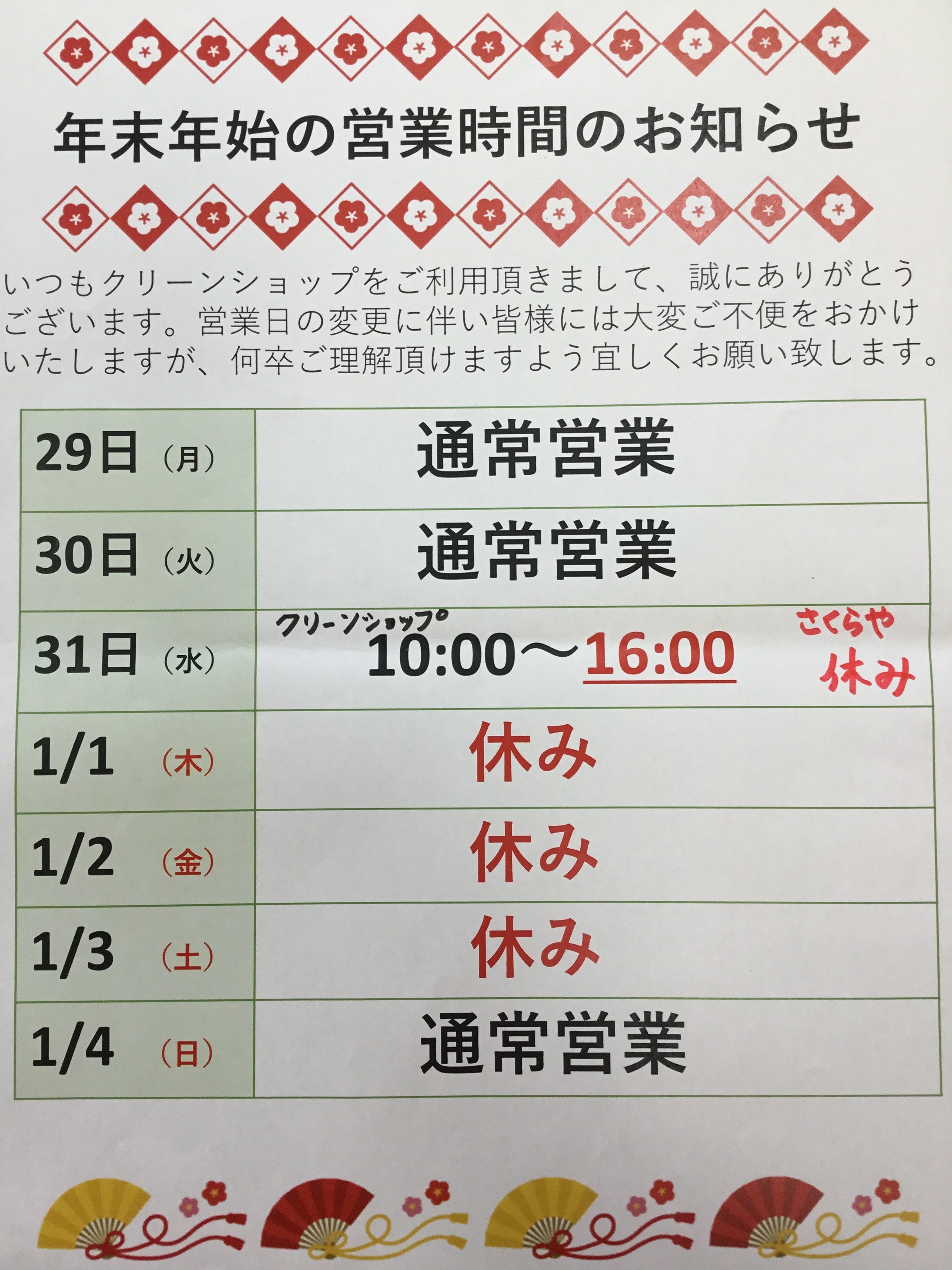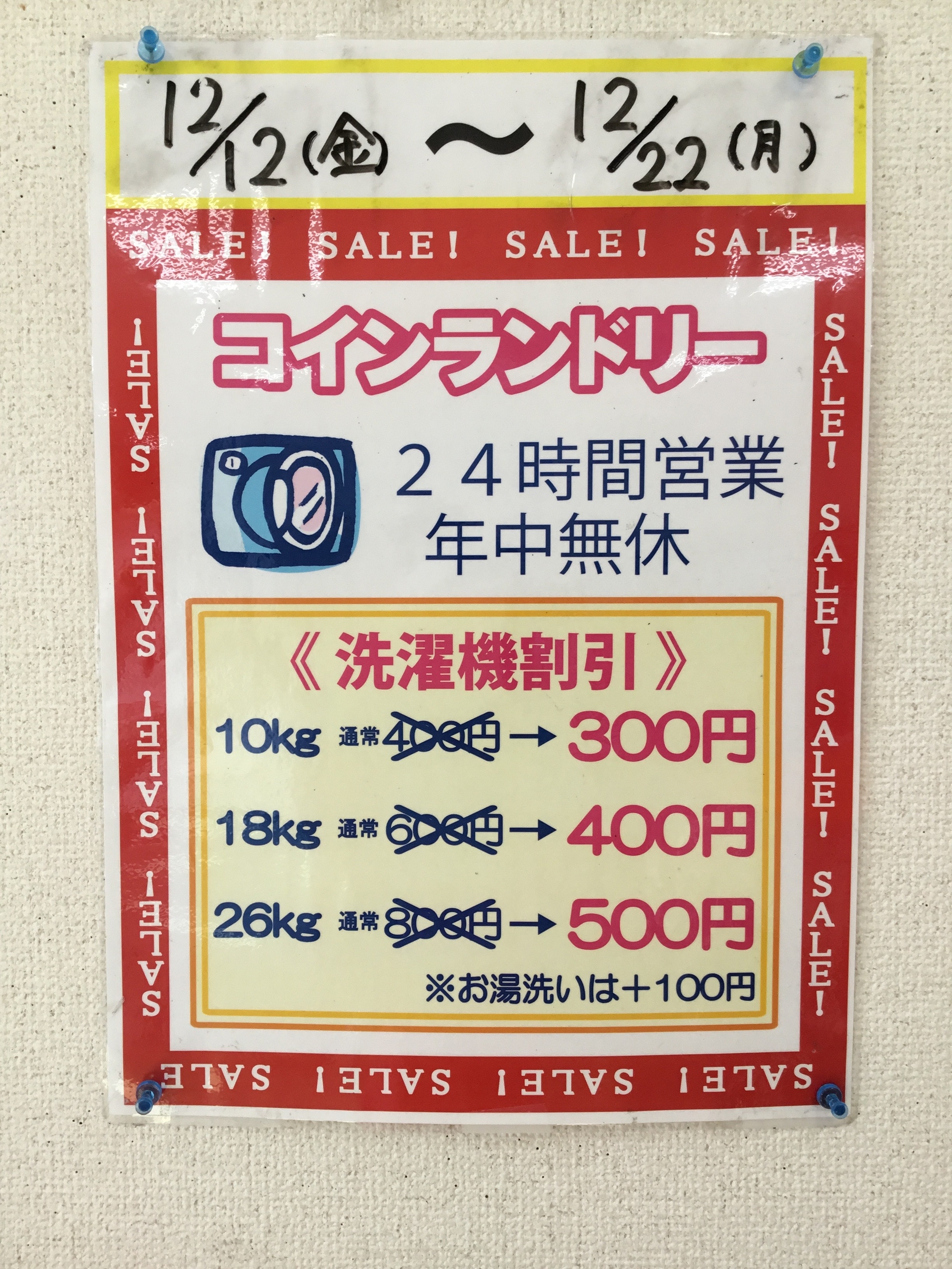 ⭐️年末年始の営業とコインランドリーセールのお知らせ⭐️