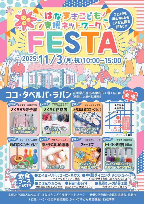 昨年大盛況に終わったはなまきこども支援ネットワークフェスタを今年も開催します!