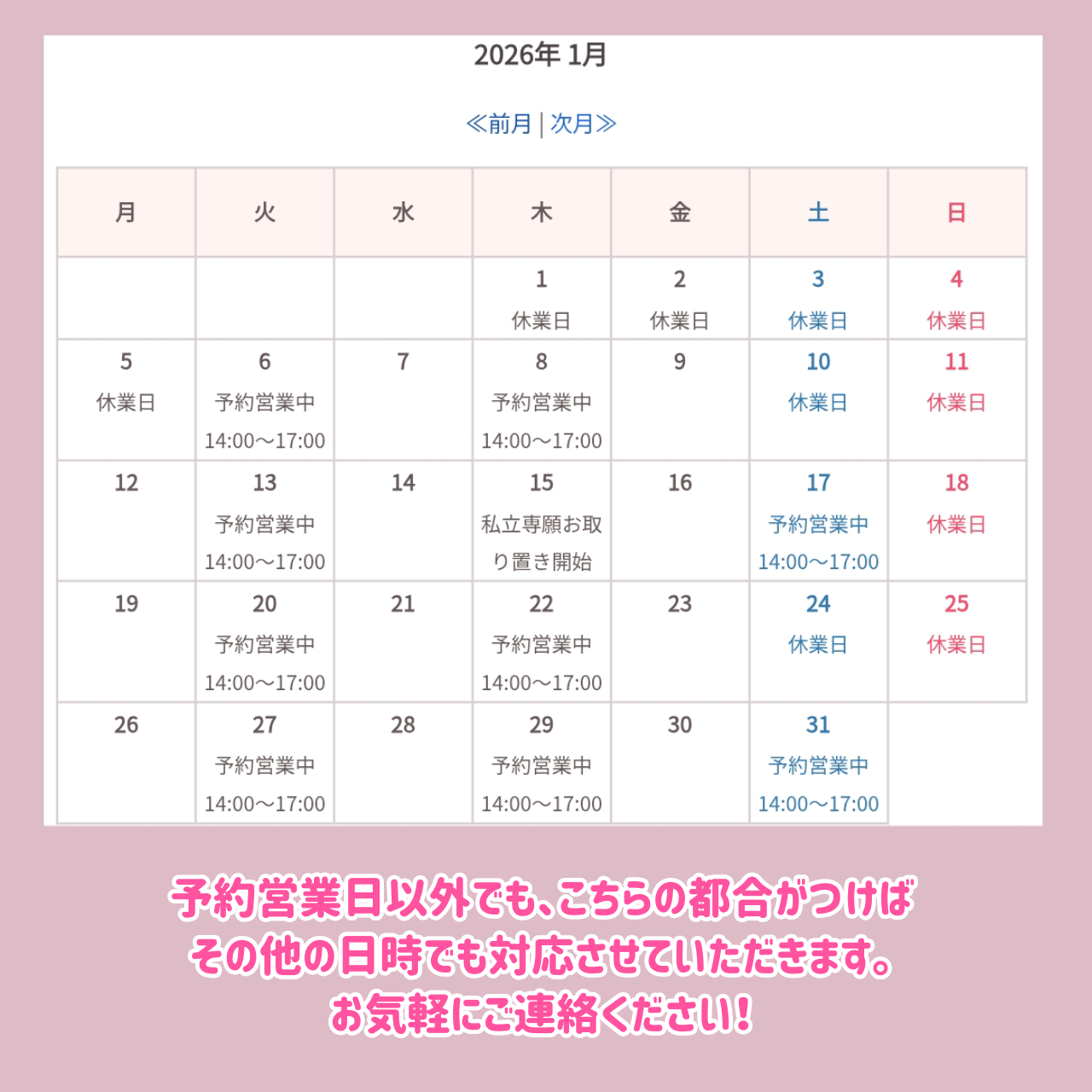 ということで、2026年1月の営業カレンダーをお知らせします📆