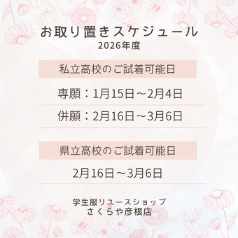 卒業して使わなくなった制服・体操服は、ぜひ通学に必要としている後輩たちのお役に立てるように、さくらや彦根店にお譲りくださいませ✨