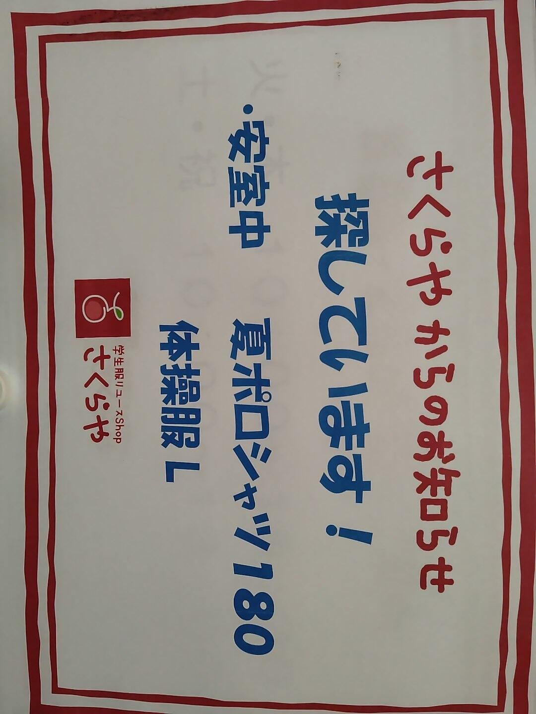 こんにちは。学生服リユースショップさくらや姫路・城北店(ひめじ・じょうほくてん)です。