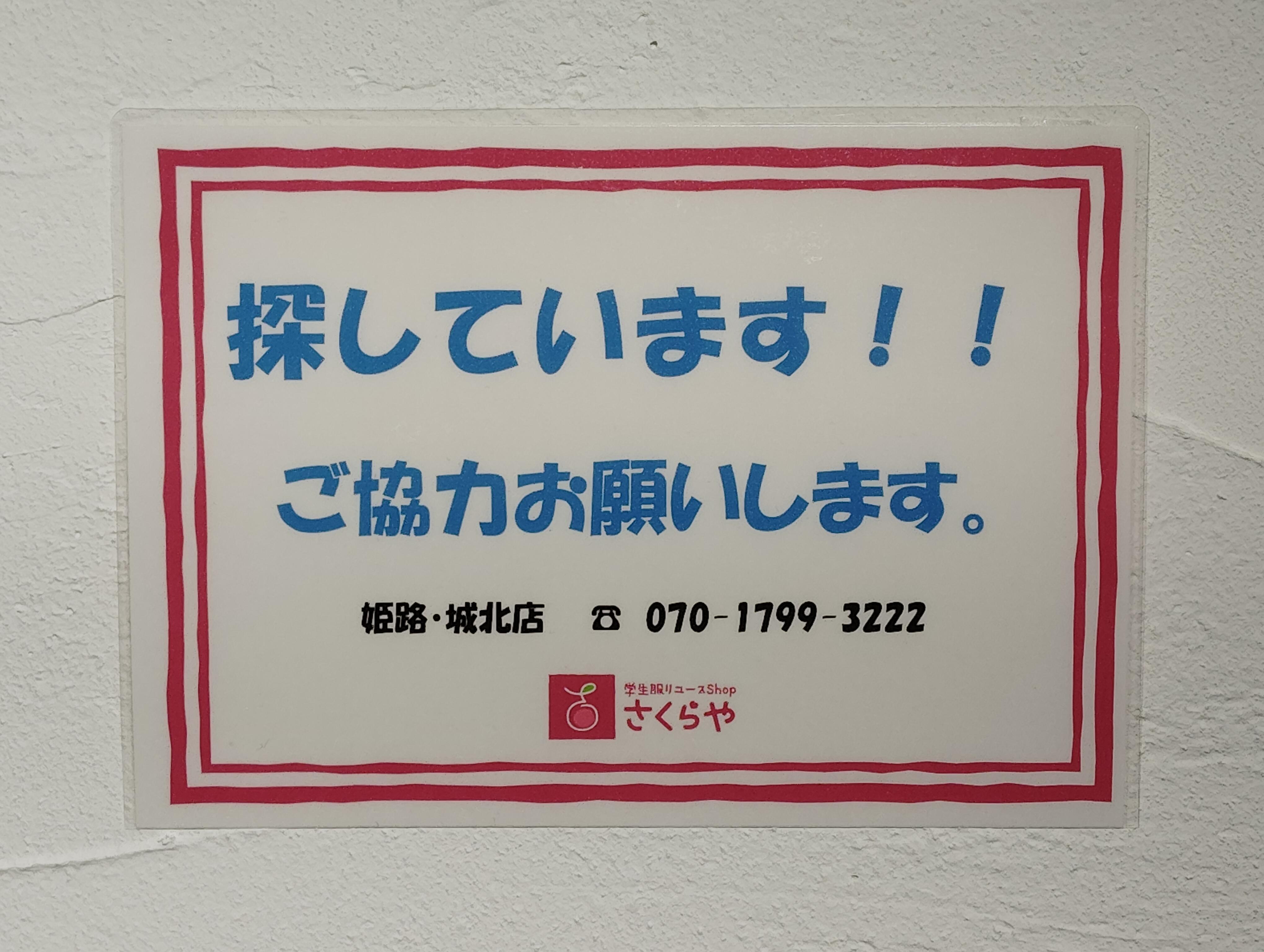 学生服リユースショップさくらや姫路・城北店(ひめじ・じょうほくてん)です。本日4月23日(木)10時~15時、営業しております。ご来店お待ちしています。