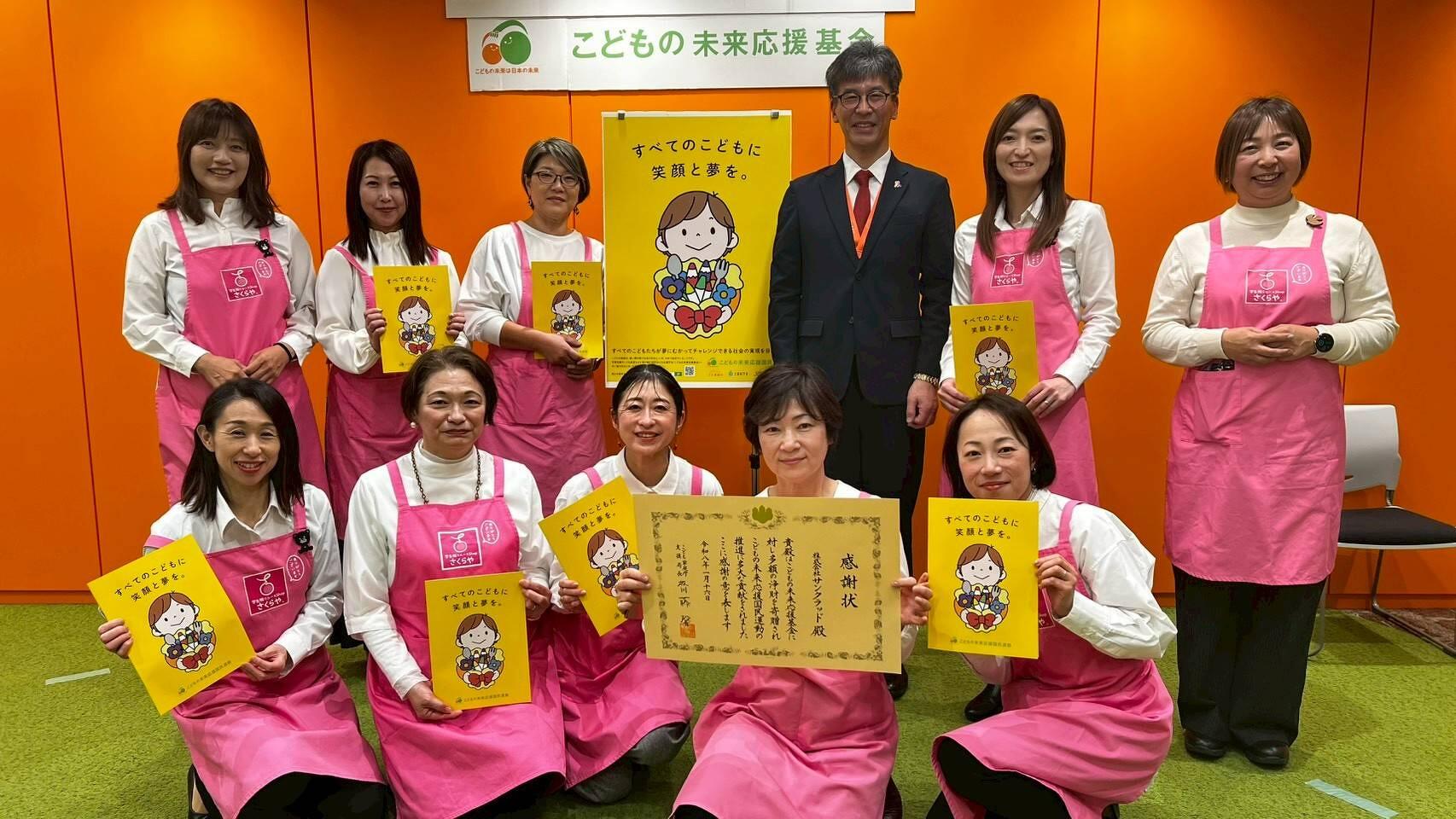 「こども未来応援国民運動」こども未来応援基金において、学生服リユースショップさくらやが、令和6年度中の協力パートナーとして認められ、斎藤支援局長様より、感謝状を贈呈して頂きました。この取り組みは地域の企業・団体様にご協力頂いている学生服回収ボックスの設置、運用を通じ、こどもの貧困対策につながる活動として評価されたものです。日頃より、ご協力下さっている、地域の皆様、企業、団体の皆さまに心より感謝申し上げます。さくらやは、これからも学生服リユースを通じて、子育て家庭への支援と、こどもたちの未来を支える地域づくりに取り組んでまいります。今後とも、どうぞよろしくお願いいたします。