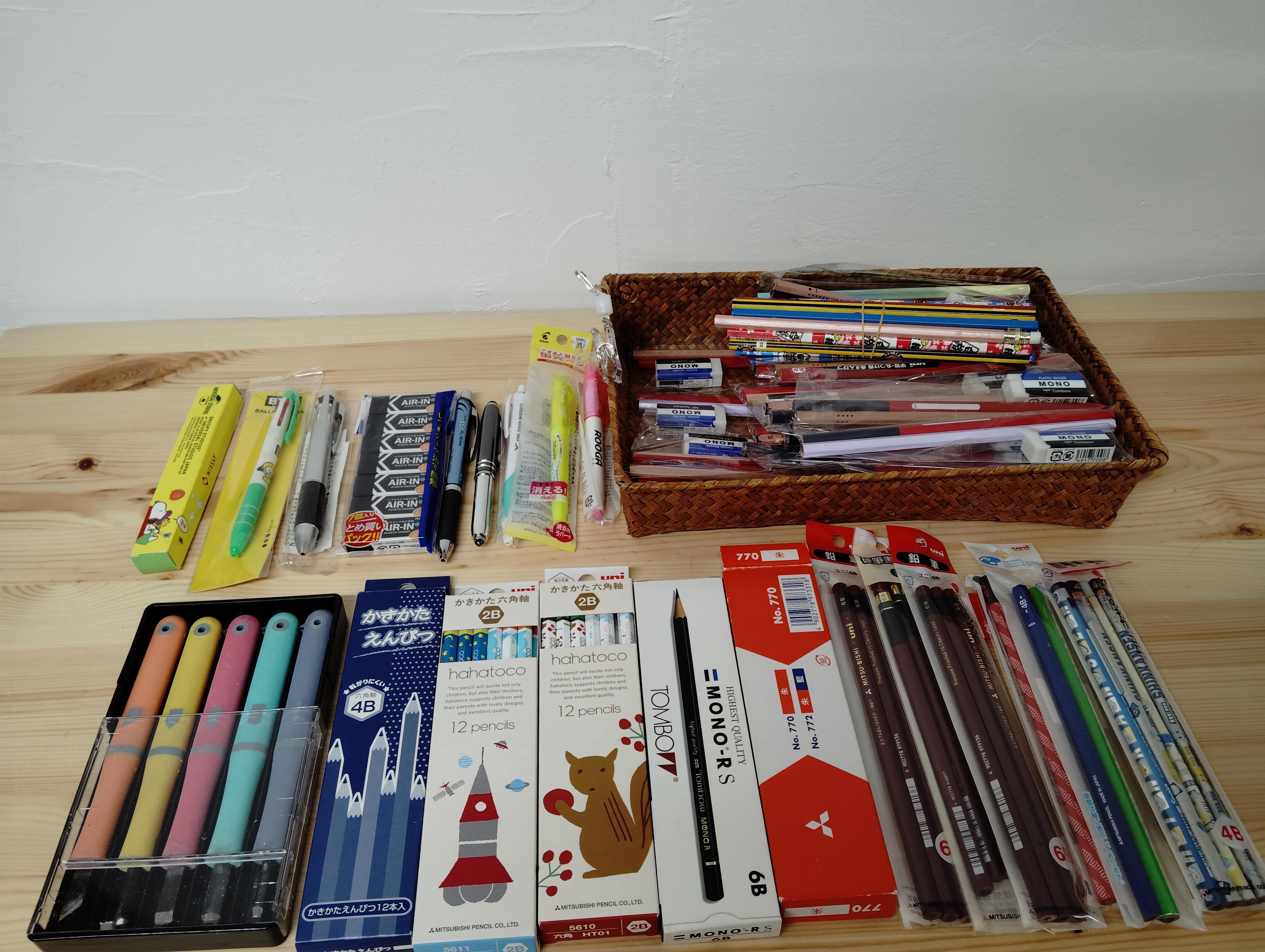 このたび未使用筆箱・ペンケース・ボールペン・えんぴつ・消しゴムなどが大量に入荷しました。種類も豊富です。写真は入荷例の一部です。ご来店、お待ちしています。