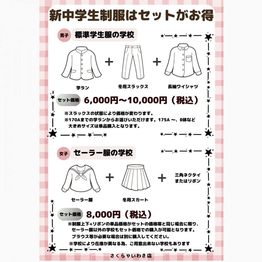 こんにちは。学生服のリユースショップ さくらや・いわき店です。
