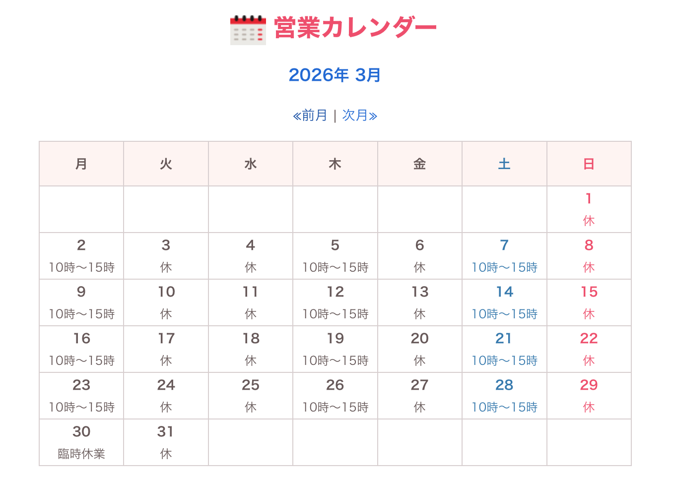 3月の営業日
