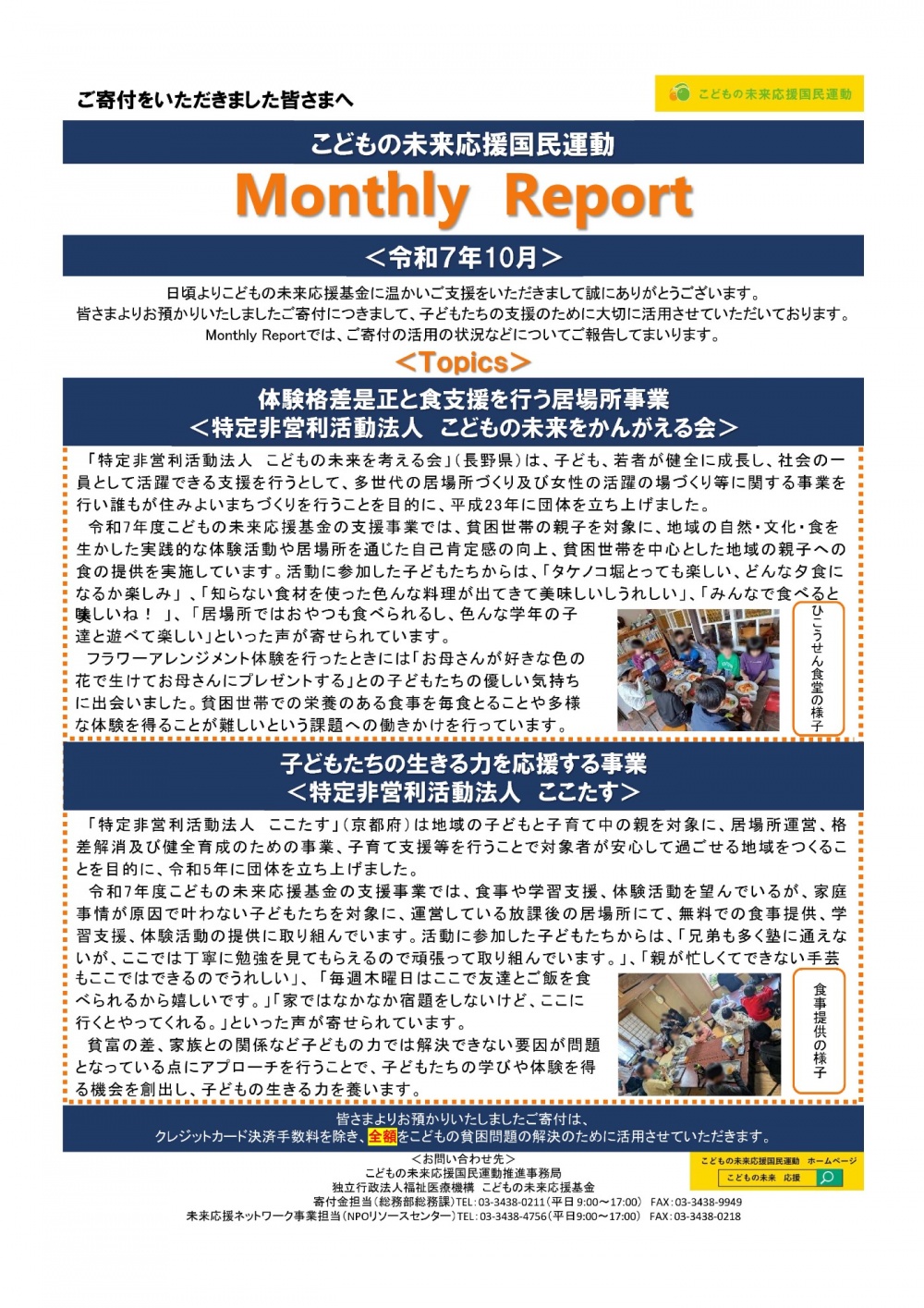 2025年9月度 内閣府の「子供の未来応援基金」のマンスリーレポートのご紹介です。