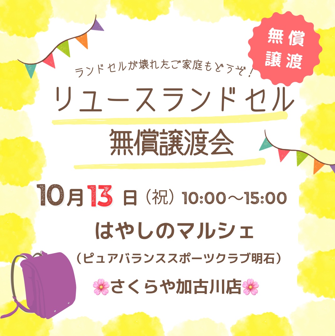 リユースランドセル無償譲渡会を開催します♪