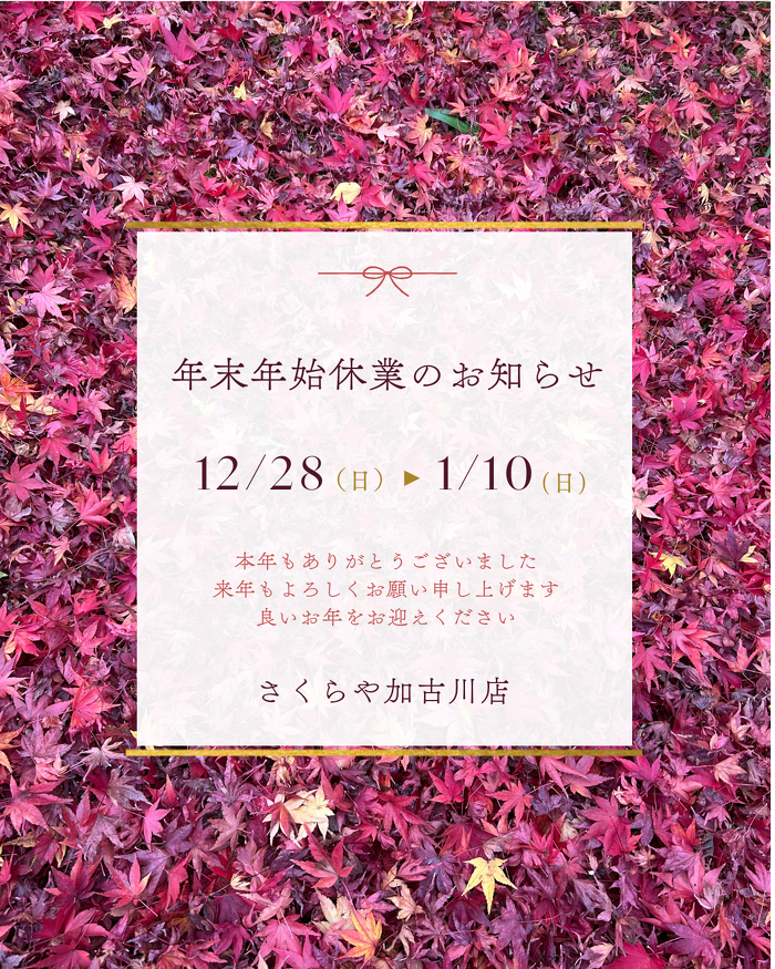 年末年始は12/28(日)〜1/10(日)までお休みいたします♪