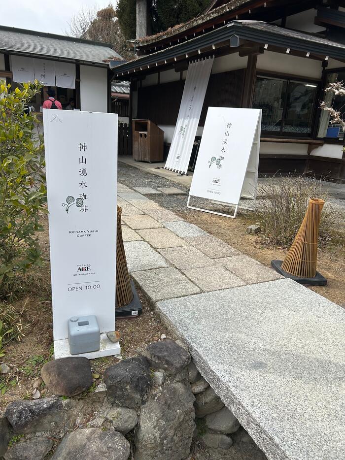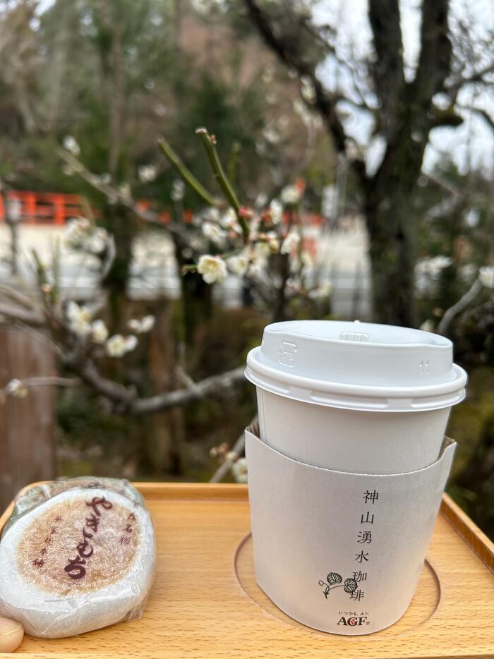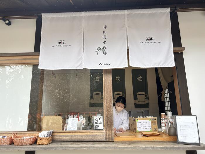 帰りに、社務所のそばのコーヒースタンドで一服。