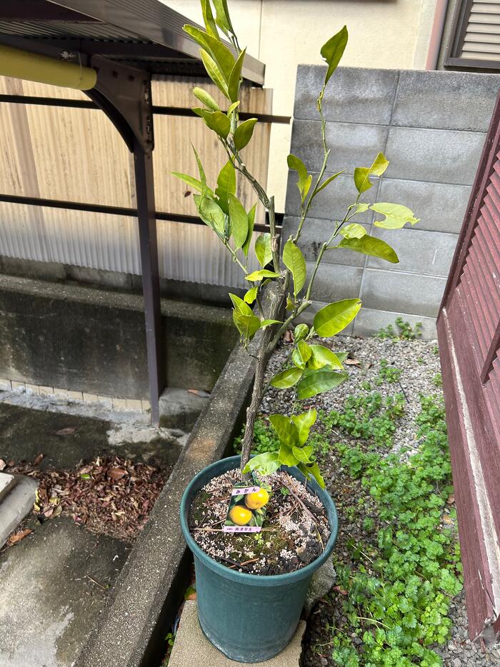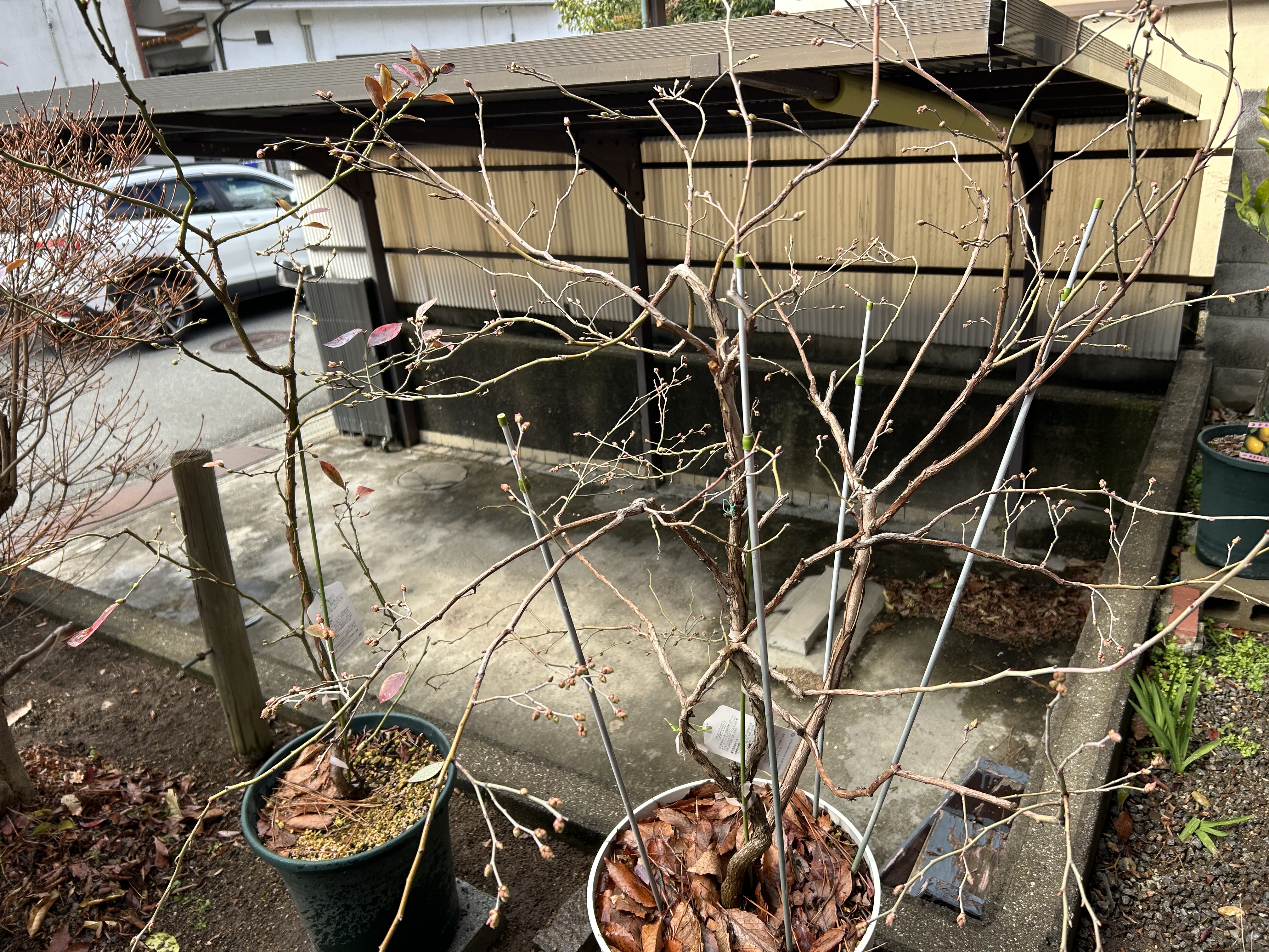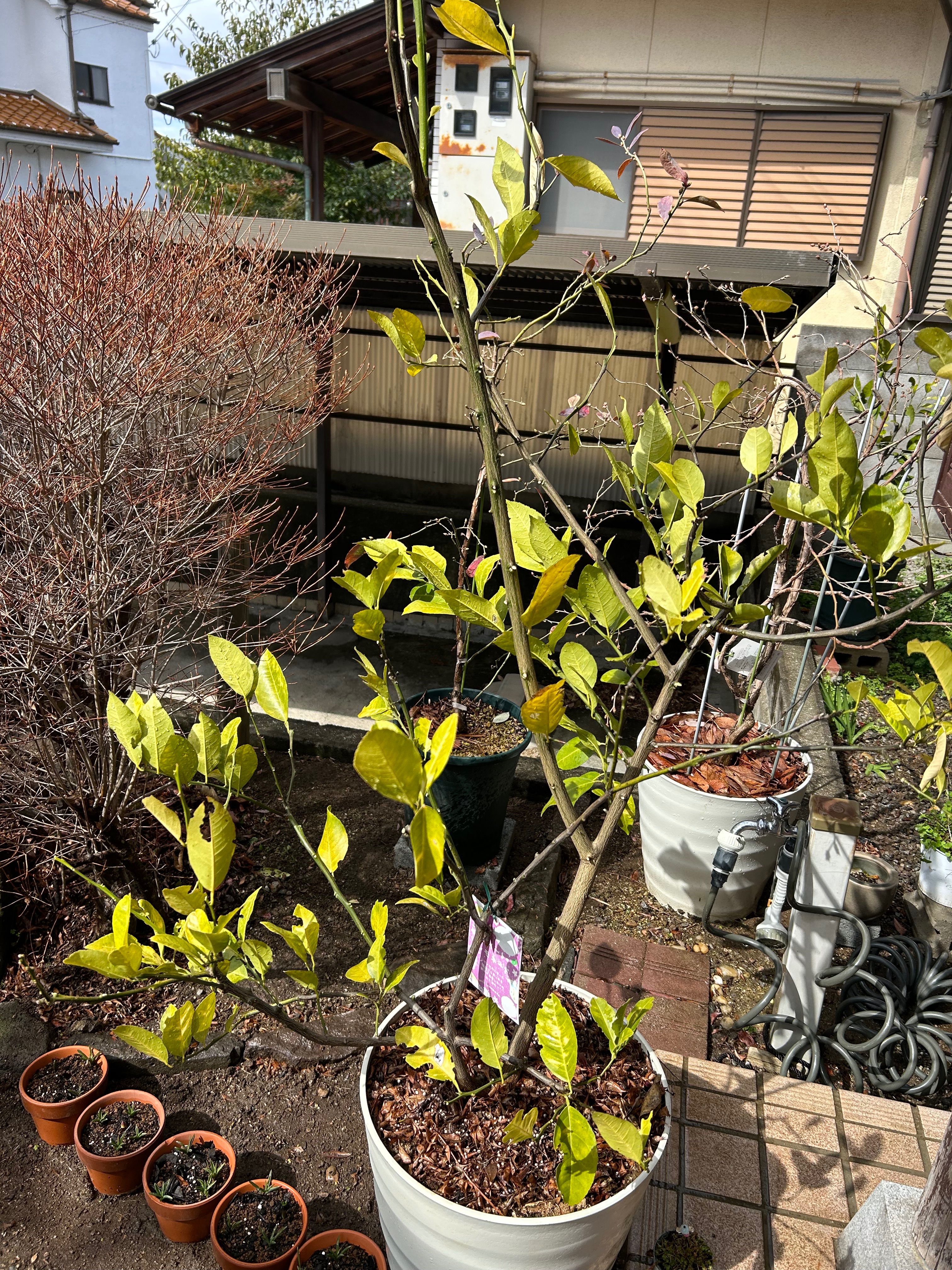 レモンやみかん、ブルーベリーの鉢植えたち。