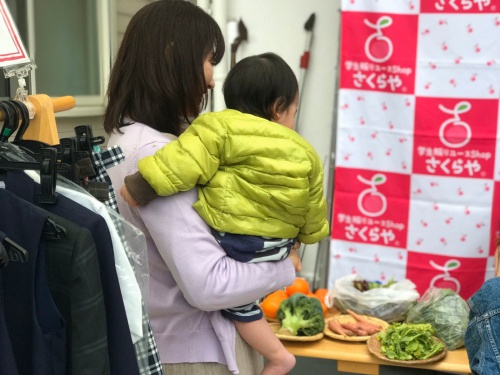 14時スタートのころは雨もやんでお野菜も制服も外に出せた