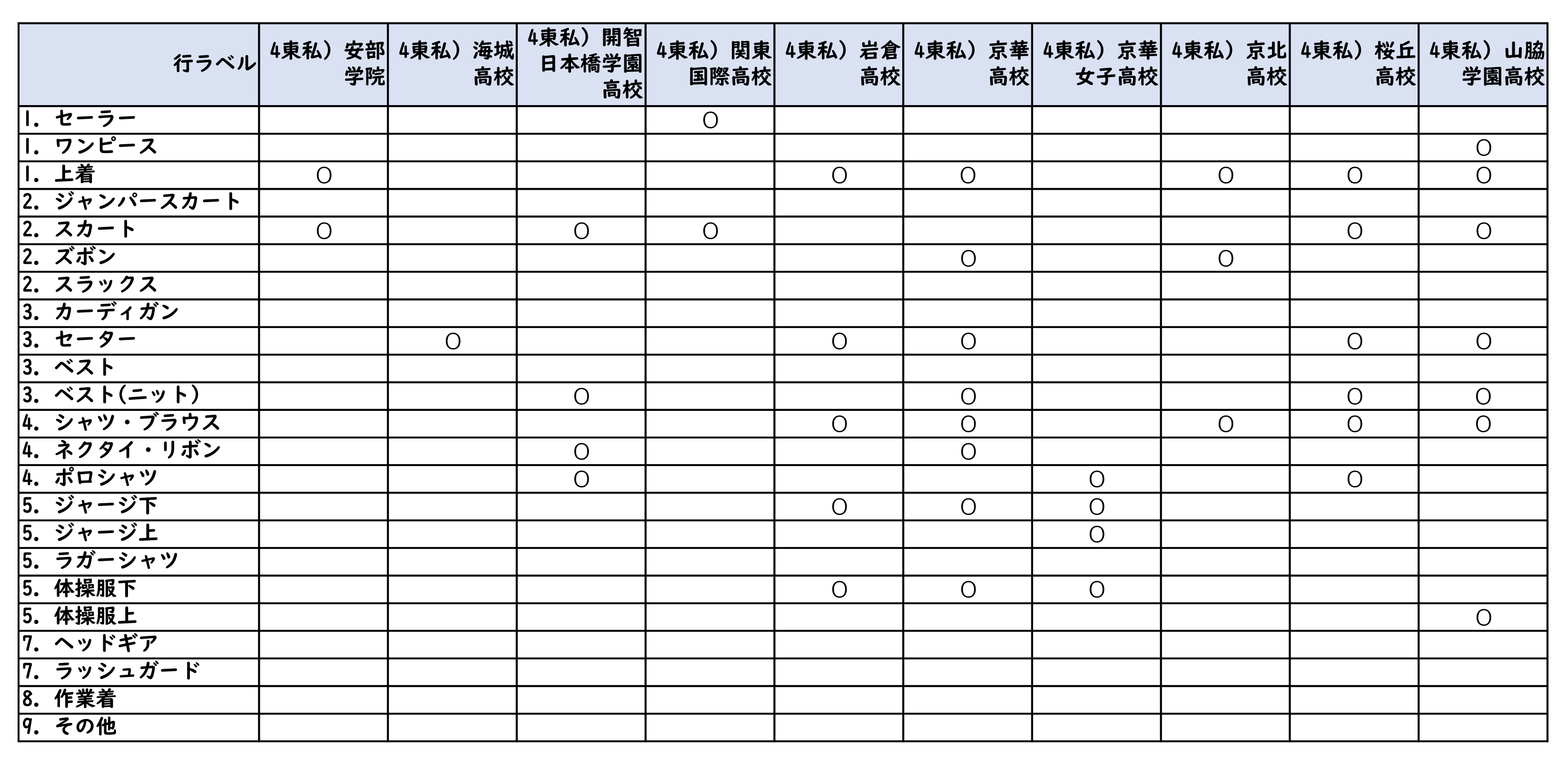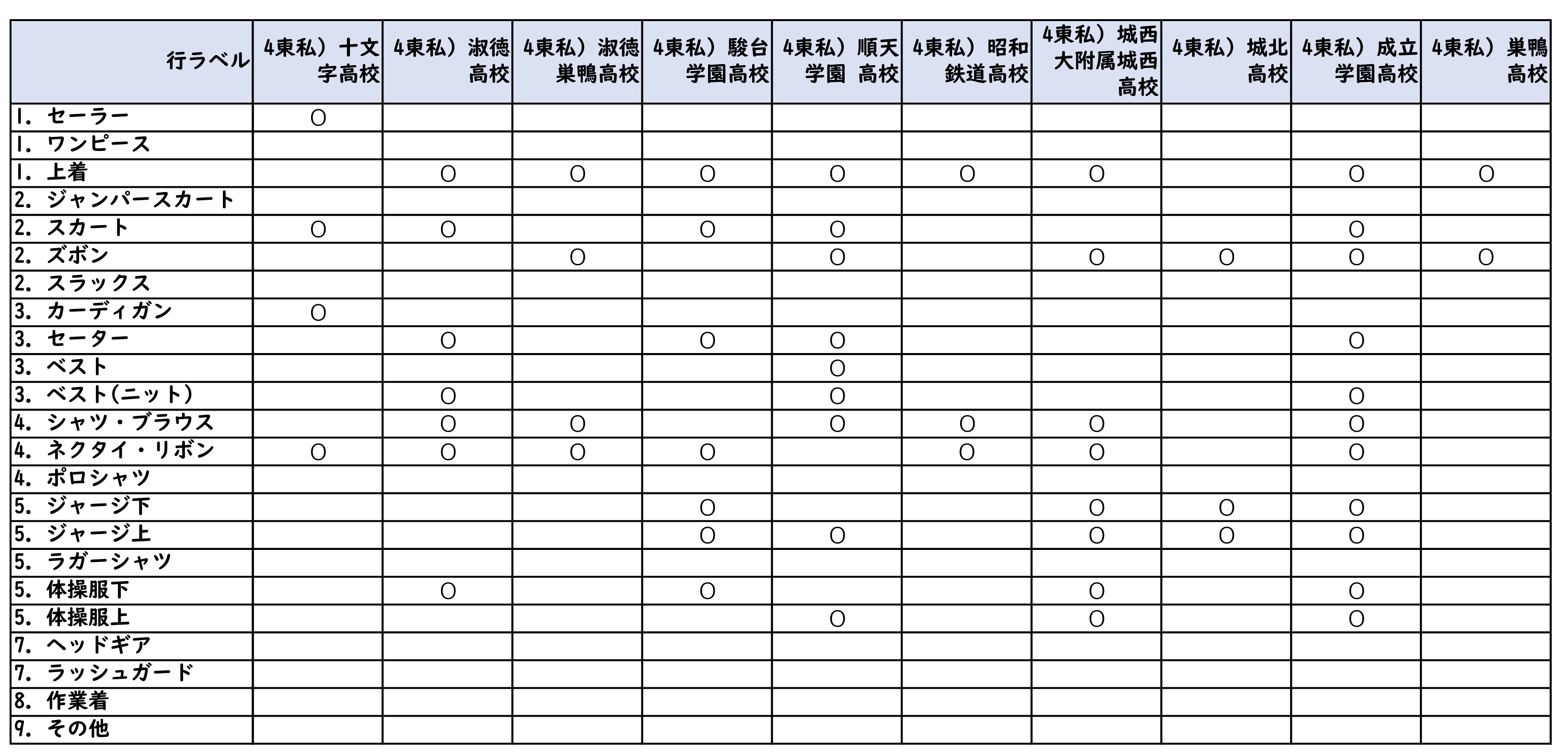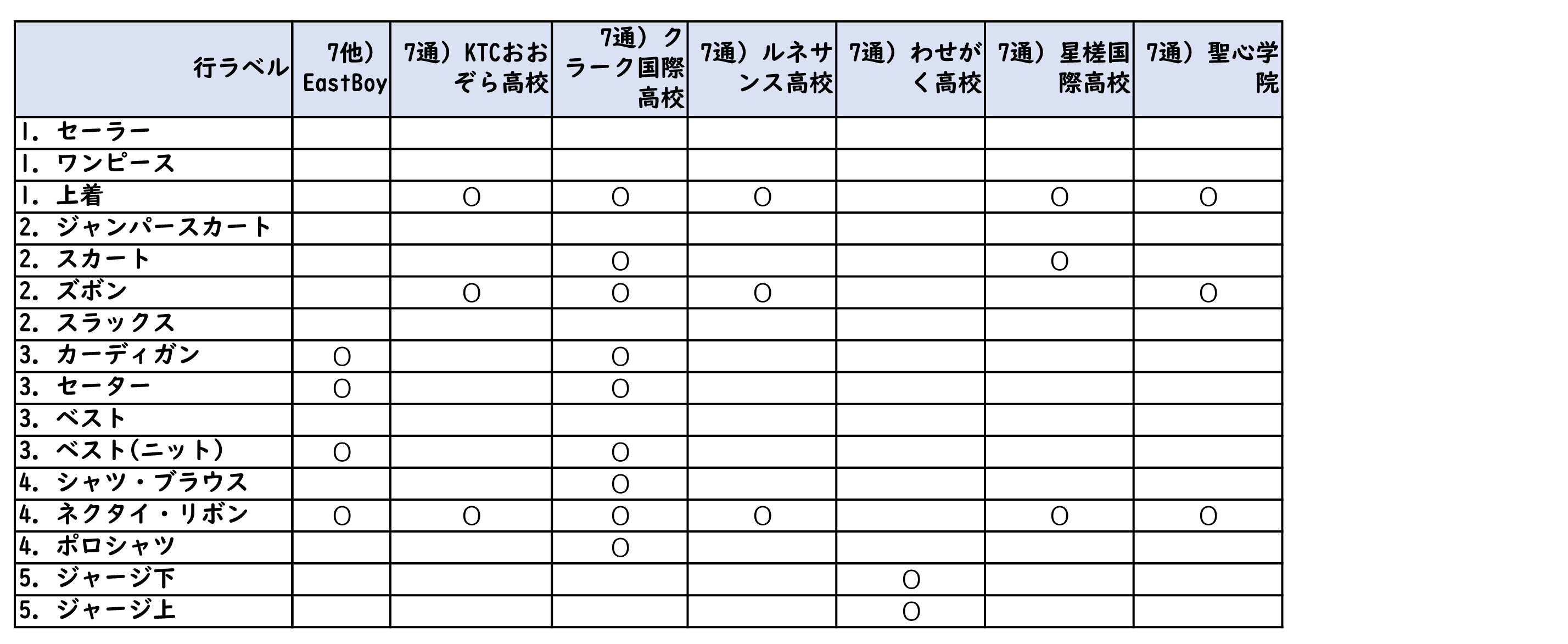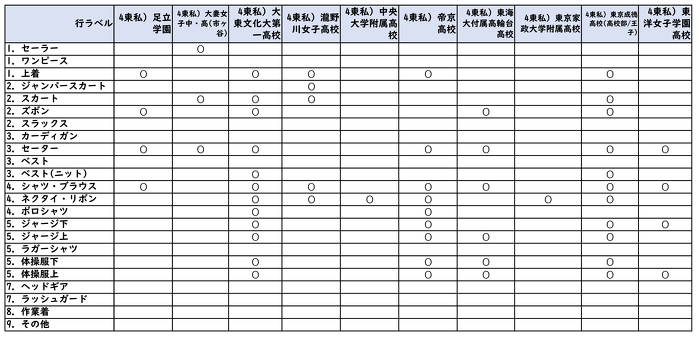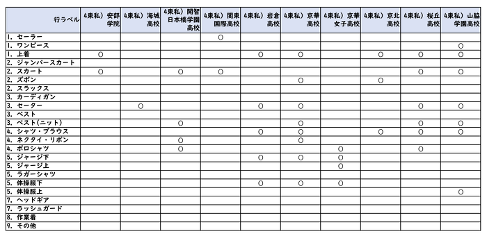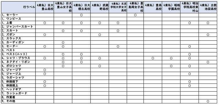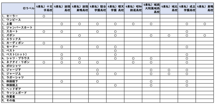 詰襟の高校の為に一番下に在庫表を表示しています。