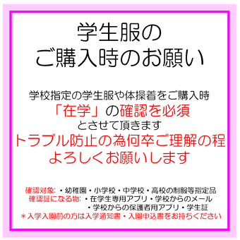 ご購入の際は必ず川口市教育委員会から送られた「入学許可証」をお持ちください。