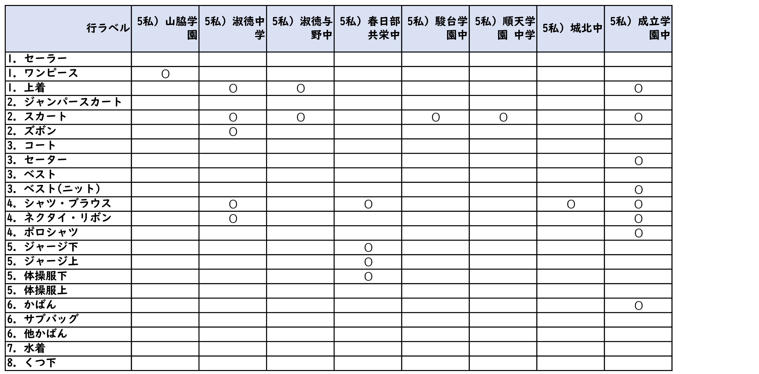 【在庫表】 埼玉県の私立高校の在庫表