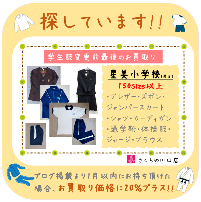 星美学園小学校 大きいサイズの制服・体操服類 を探しています。