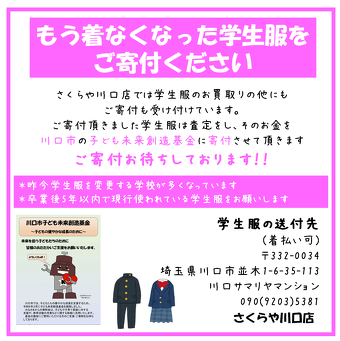 学生服のご寄付も受け付けております。