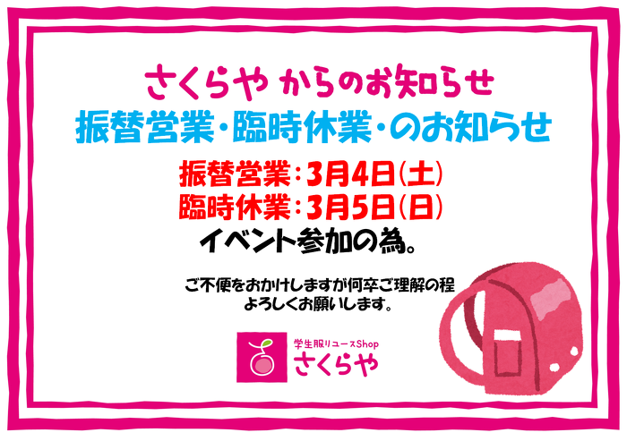 イベント参加の為 臨時休業 |