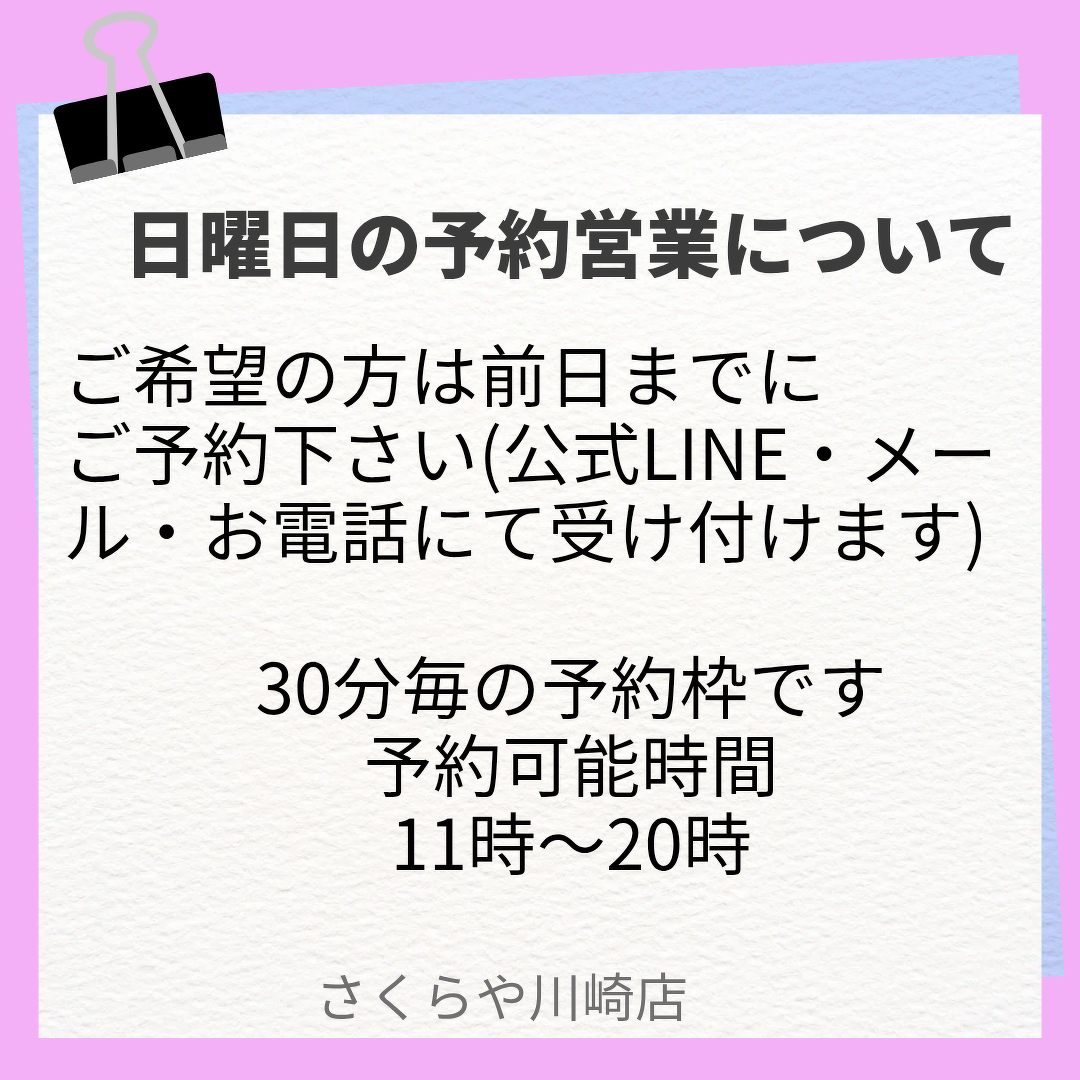 カレンダーに表記しています日曜日の予約営業についてお知らせします🍀