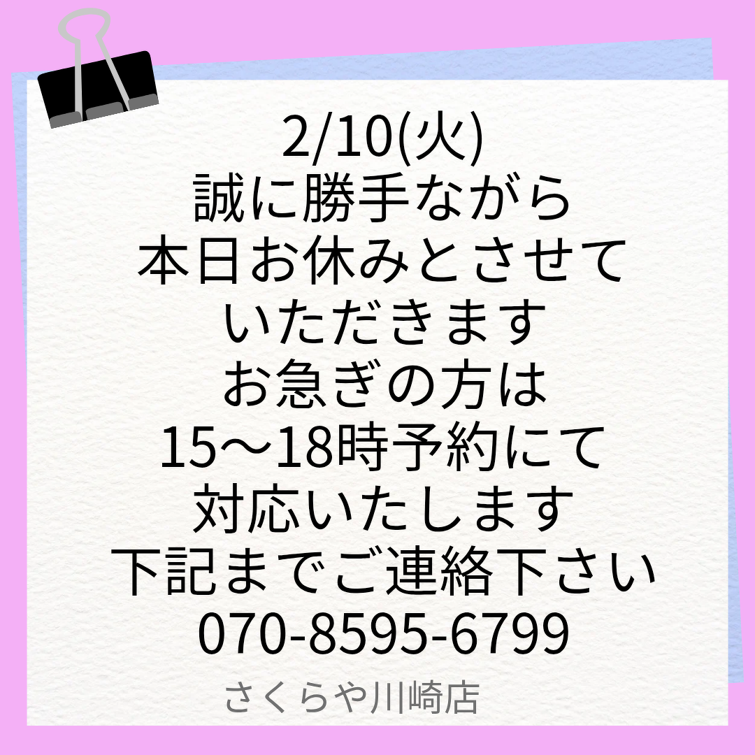 2/10(火)臨時休業いたします