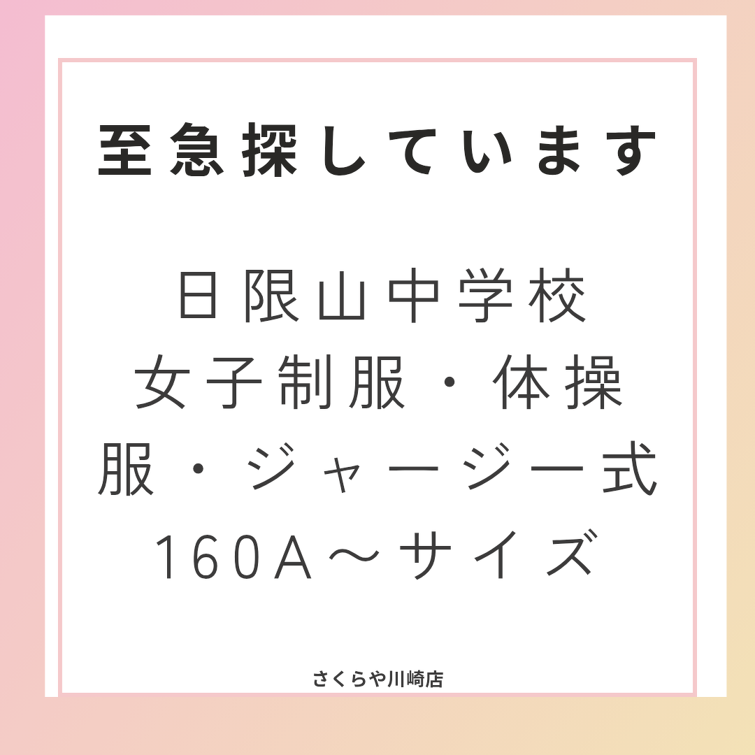 日限山中学校女子制服・体操服・ジャージ一式 至急探しています