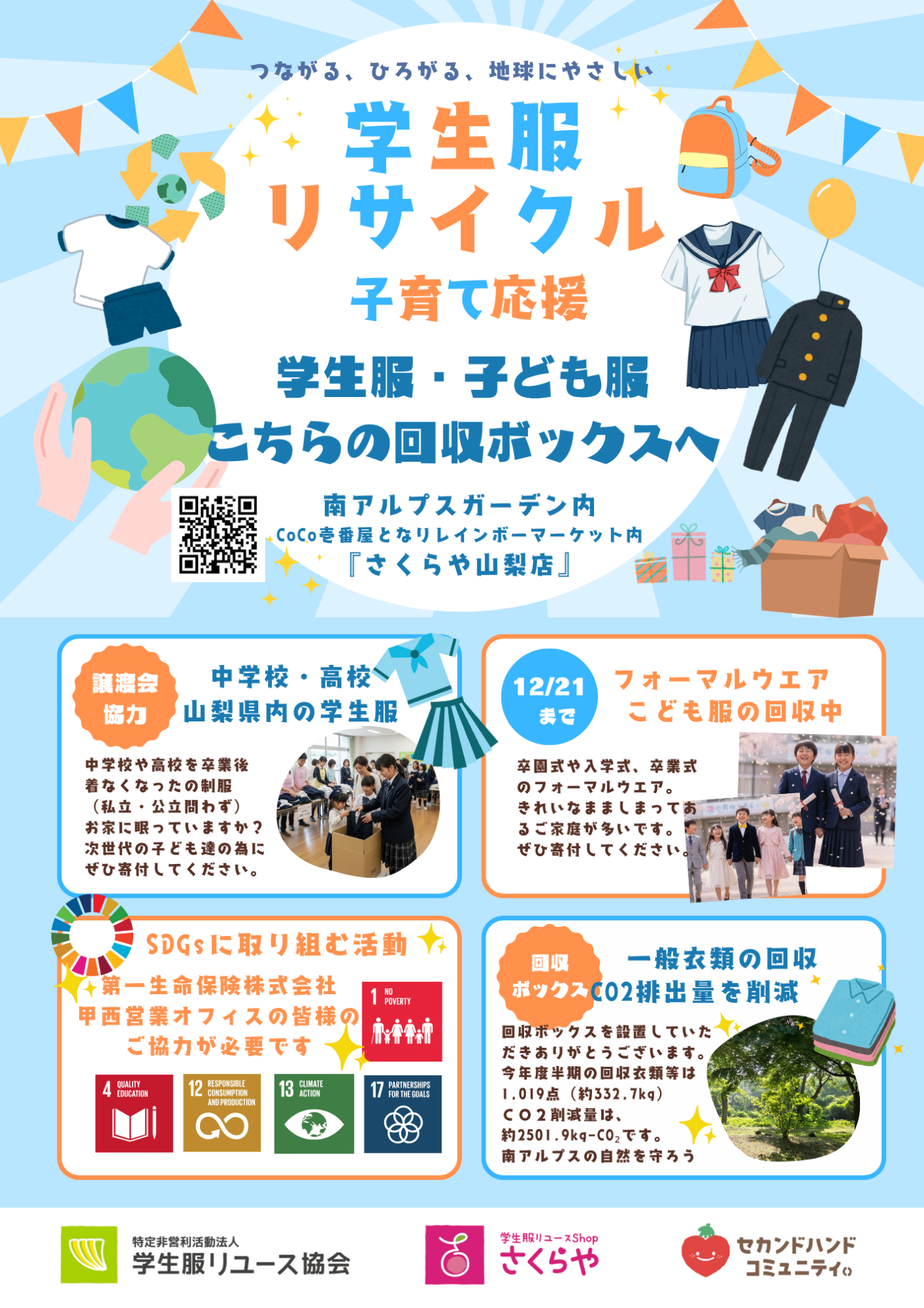 学生服リユースshopさくらや山梨店は令和4年度から申請している甲府市SDGs推進パートナー登録を更新しました。