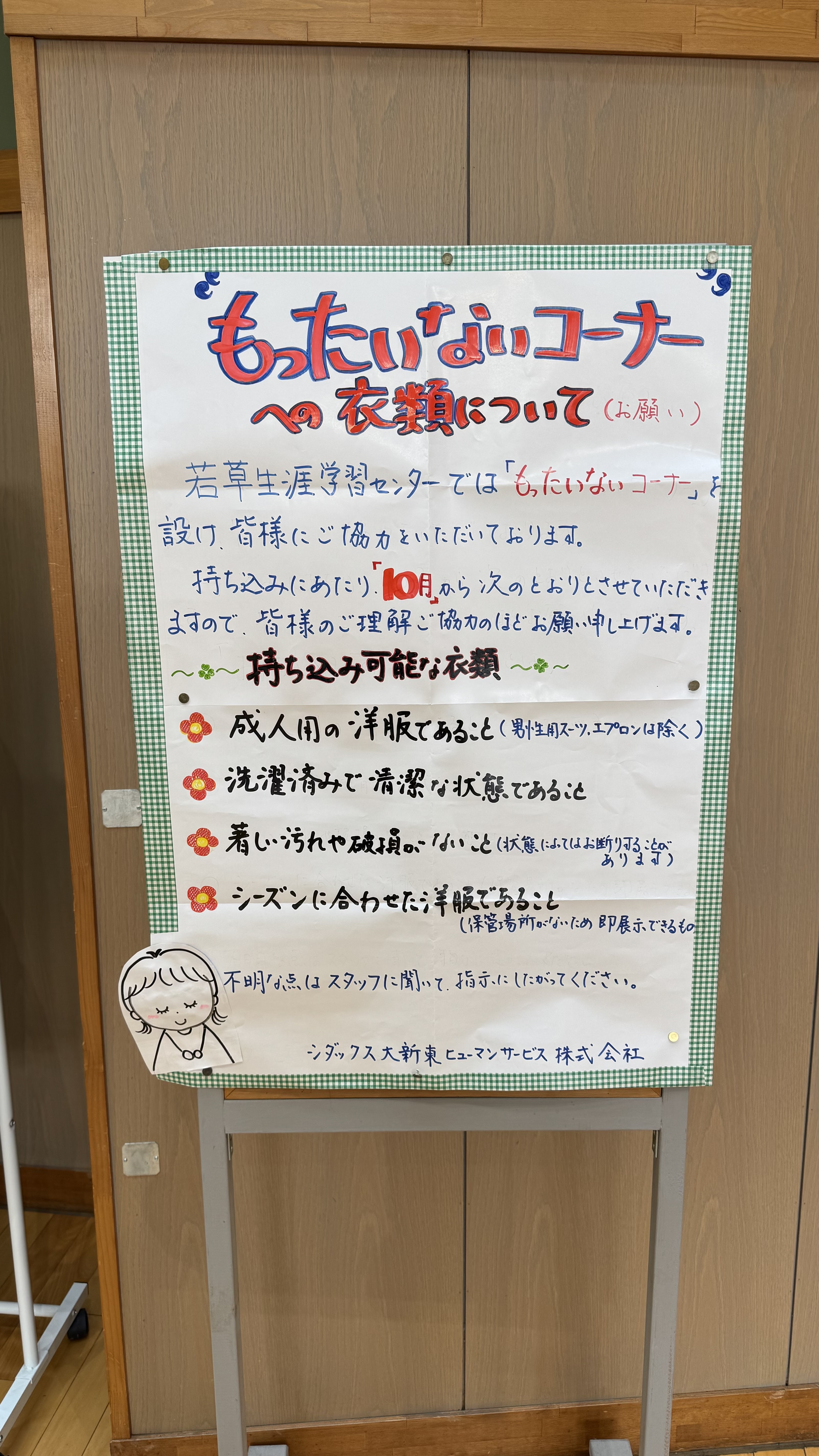 2025.11.18 若草地区譲渡会 11月16日に開催された若草地区の譲渡会にさくら山梨も参加しました🌸 たくさんの方に参加いただき次世代の必要な方へ繋がれました☺️✨ 次回の譲渡会は11月23日に甲西地区で開催されます☘️ 10時から12時に引き取り、13時から15時にお譲りになります。 着なくなった学生服や体操着がありましたらご参加ください。 甲西地区支えあい協議体主催です。 さくらやも参加させていただきます☺︎ シダックス大新東ヒューマンサービス株式会社主催のリユース♻️コーナーもありました😄