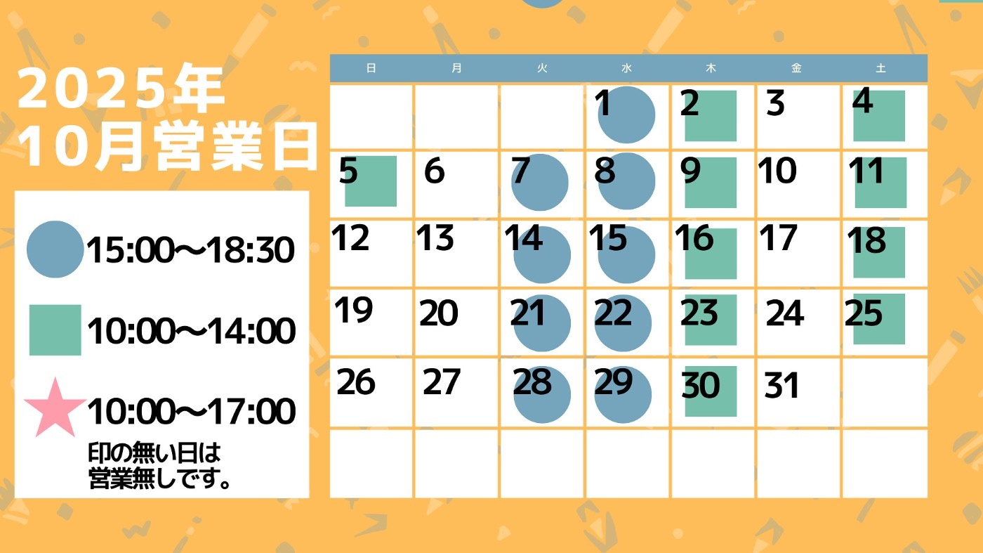 20 営業無し 21 15:00〜18:30 22 15:00〜18:30 23 10:00〜14:00 24 営業無し 25 10:00〜14:00 26 営業無し