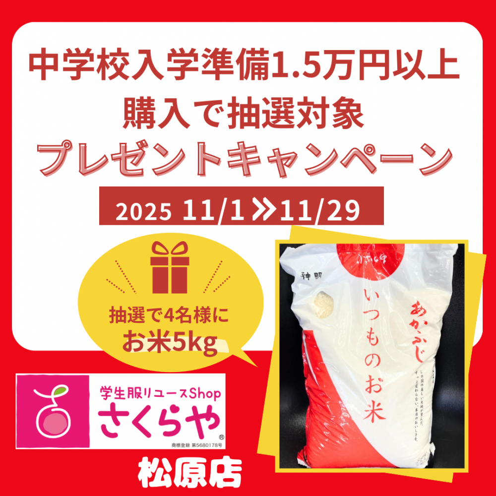中学校入学準備は学生服リユースShopさくらや松原店をお忘れ無く!