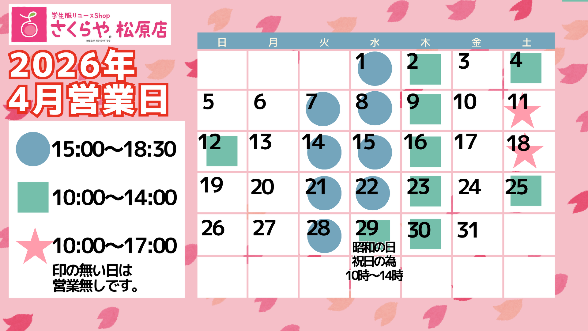 制服のデザイン変更が増えています。使えなくなる前に必要とされている方にバトンタッチするため、さくらや松原店をご利用お願い致します。