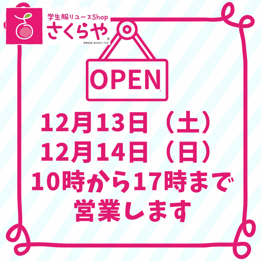【今週末土日曜10時から17時営業】と高校制服取り置き開始のご案内です!