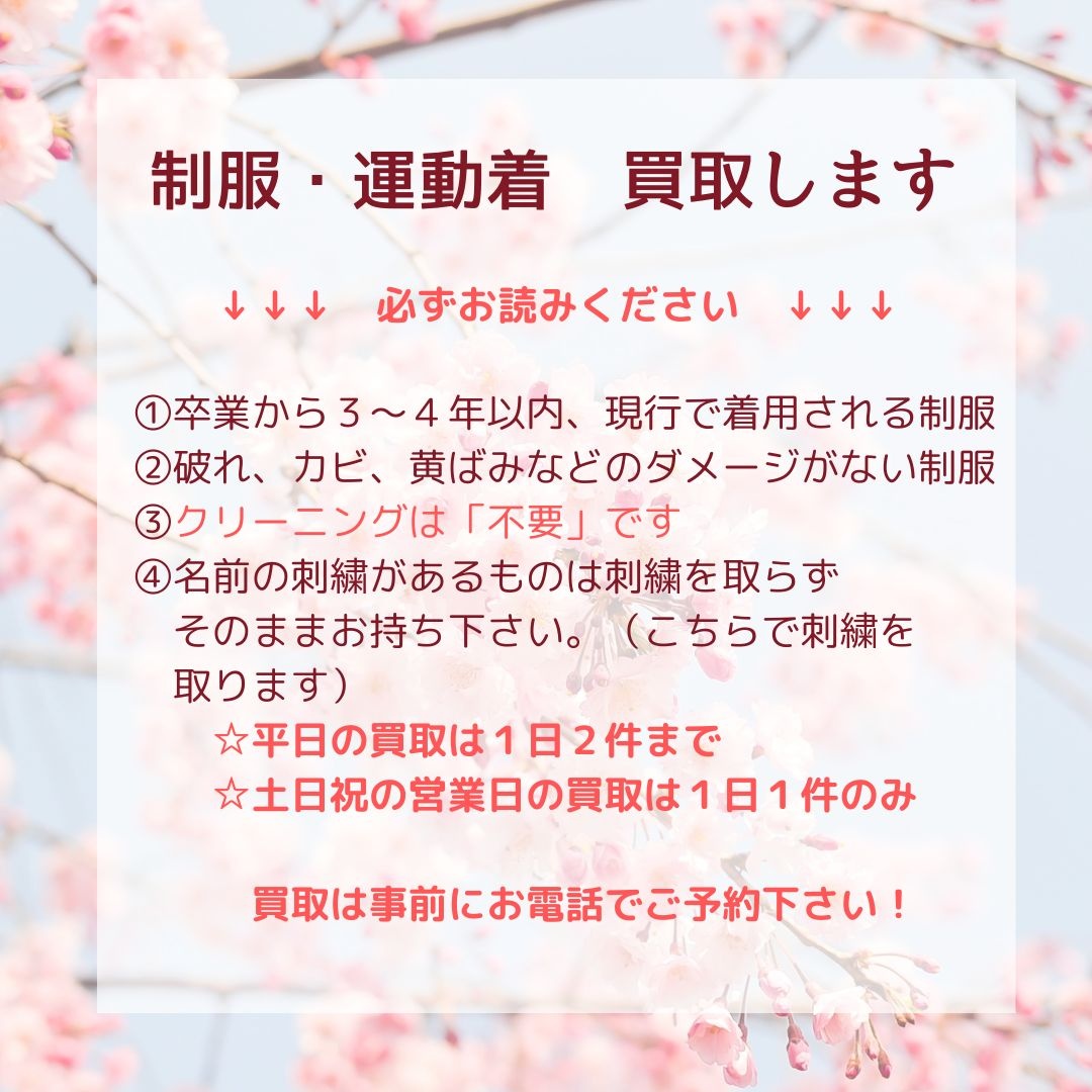 サイズアップ、転校による制服や運動着のご購入の際は、