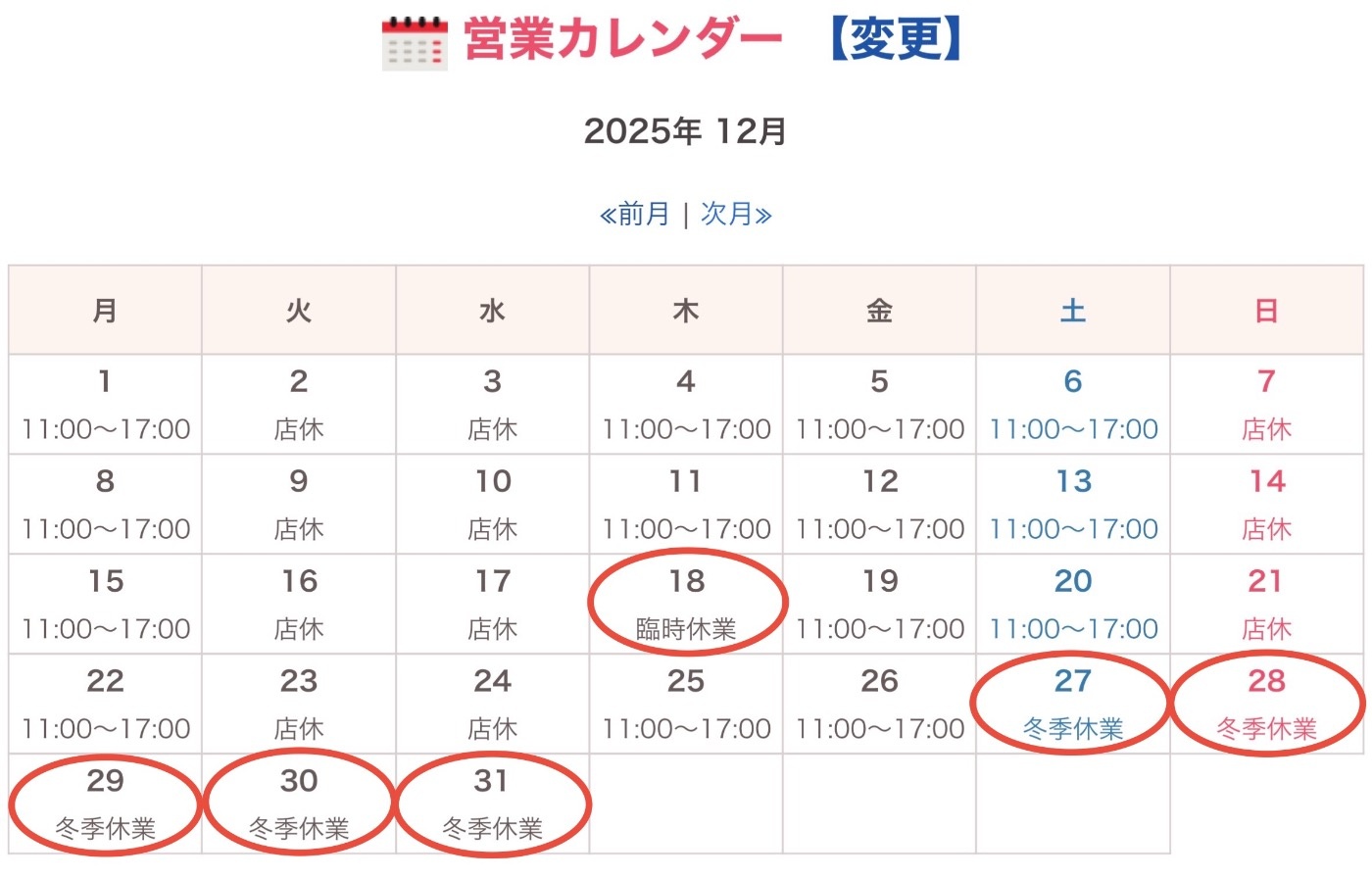 ○ 営業日 月・木・金・土(定休日 火・水・日)