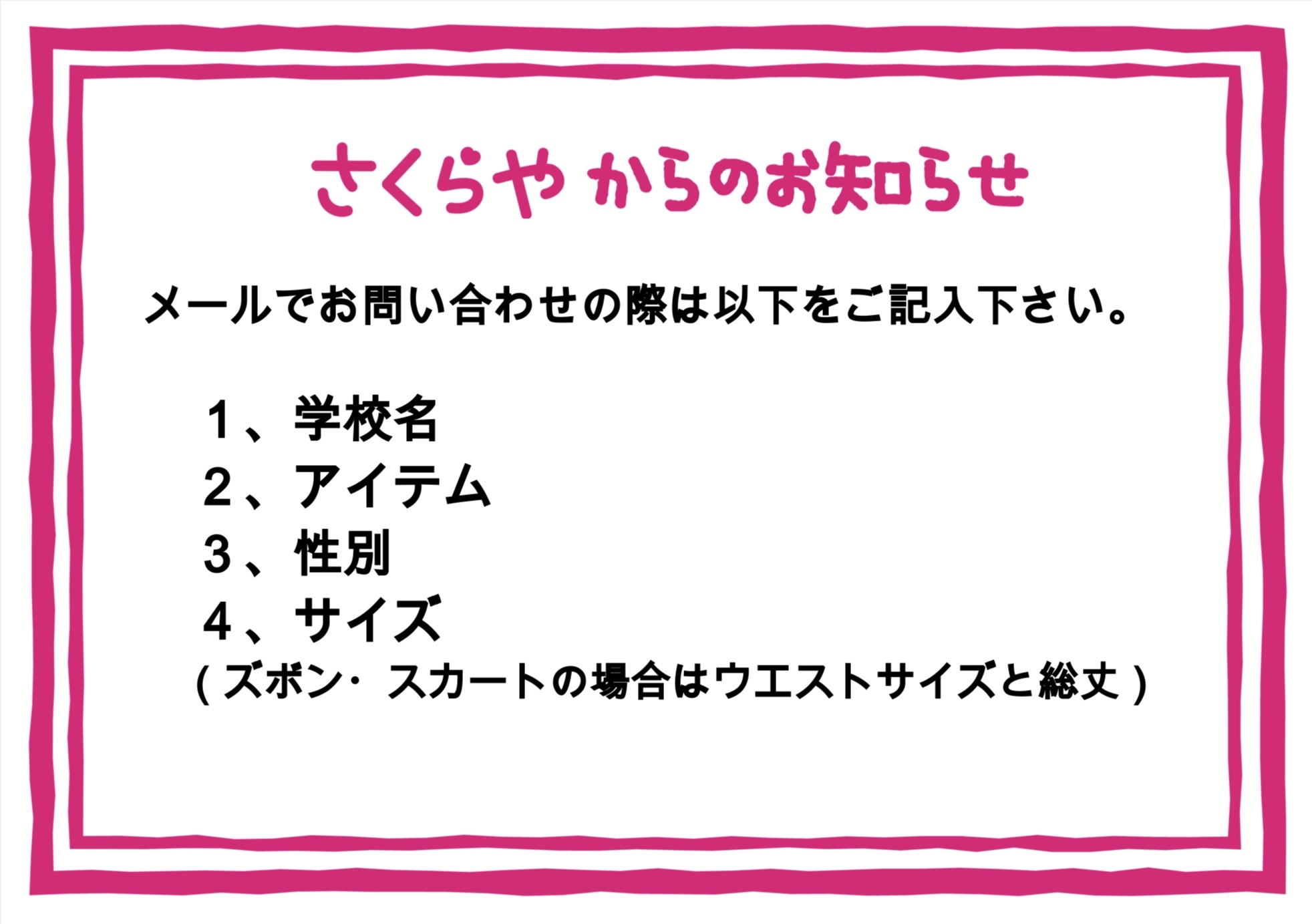 ※制服の無い学校に通う予定の方へ他校の制服をお売りする事も出来ません。