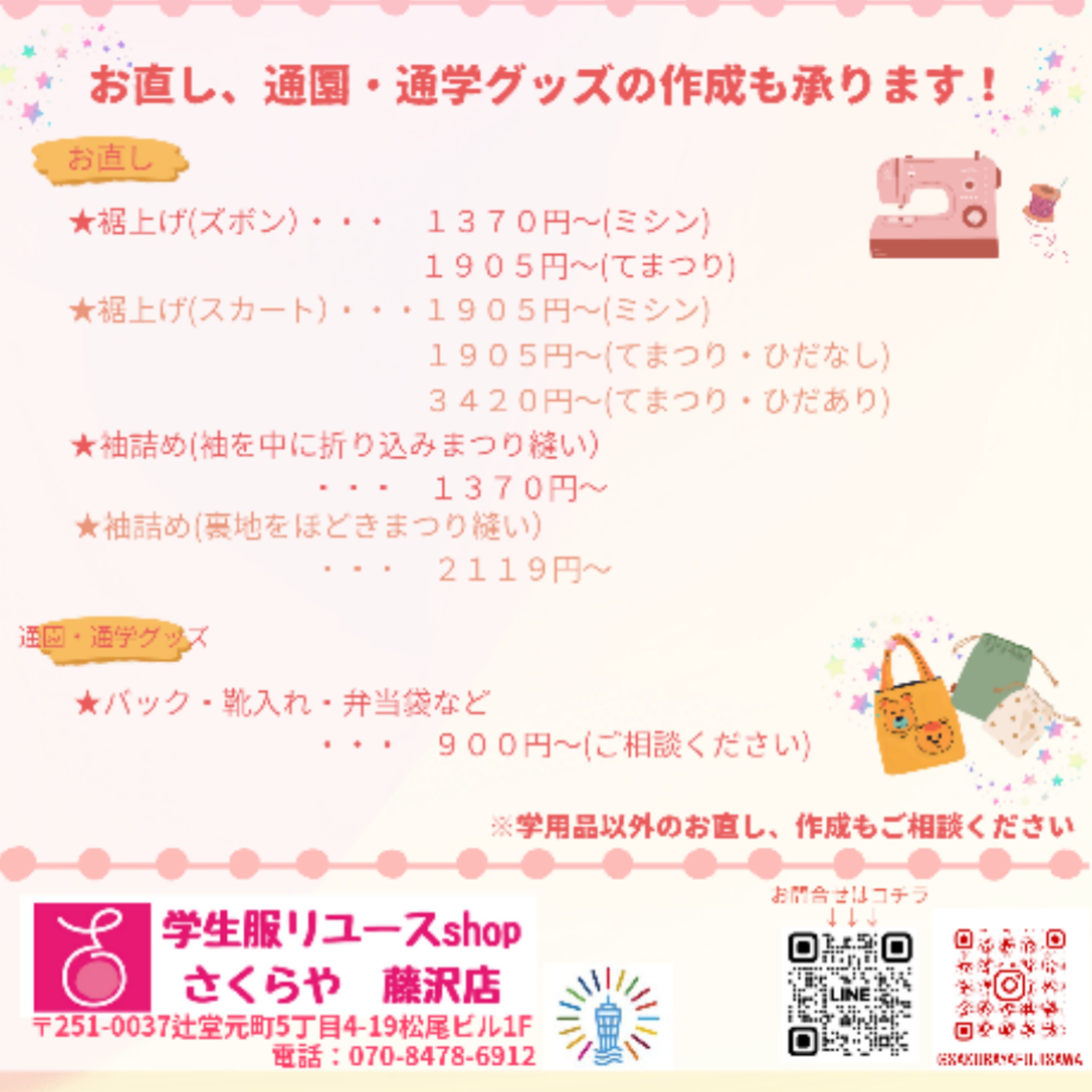 藤沢市でリユース学生服の回収、販売をしている学生服リユースshopさくらや藤沢店です🌸
