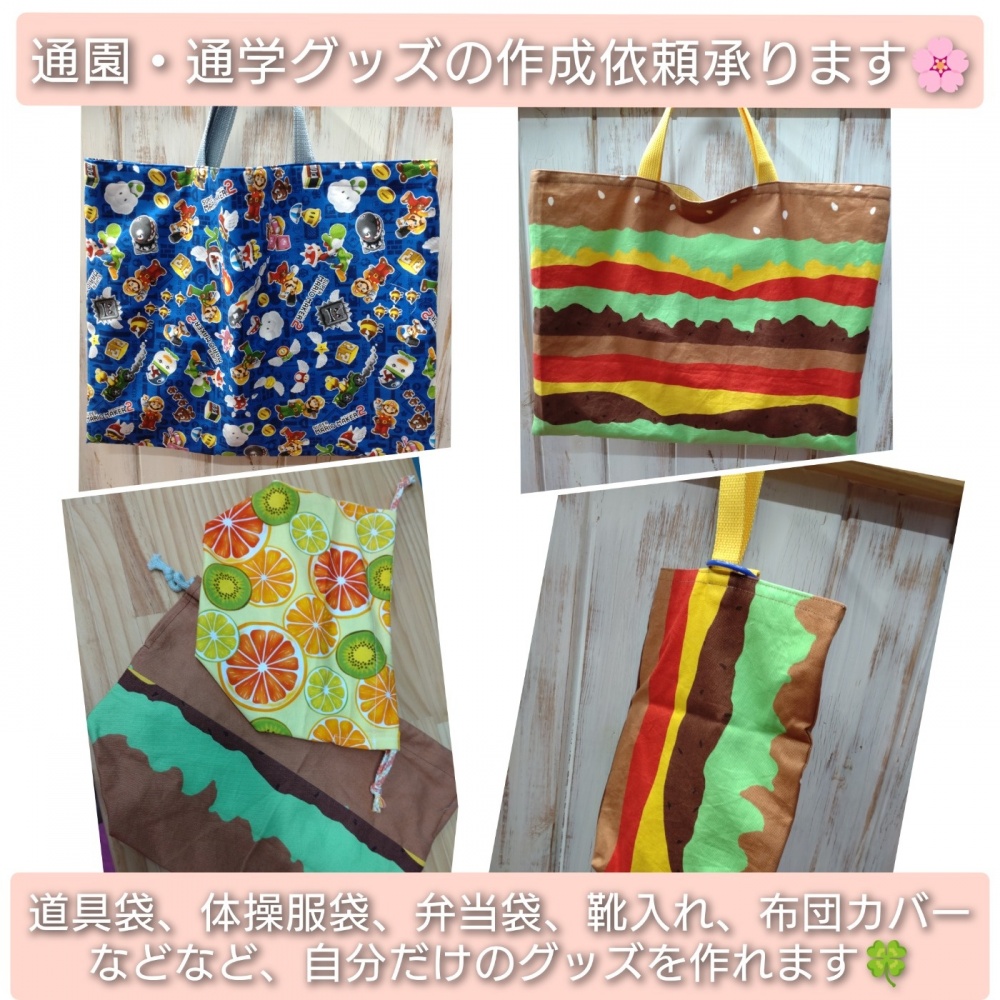 道具入れ、靴入れ、体操服入れ、弁当袋と作って3000円〜4000円になります。