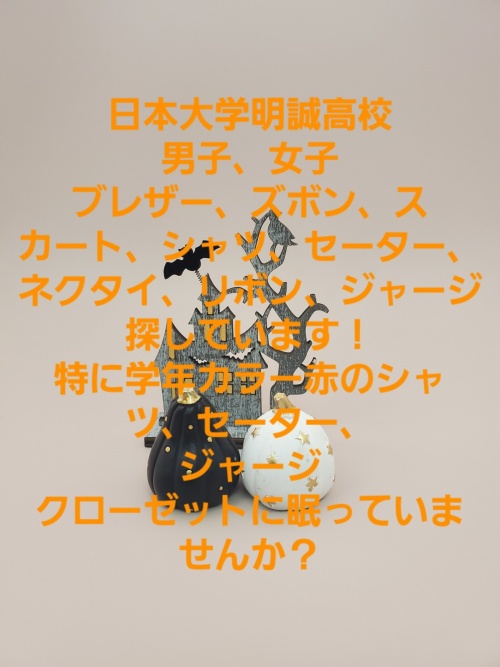 日本大学明誠高校の制服をお持ちの方はさくらや立川店までご連絡ください。買い取り致します。またはご寄付は着払い郵送にてお受け取りします。