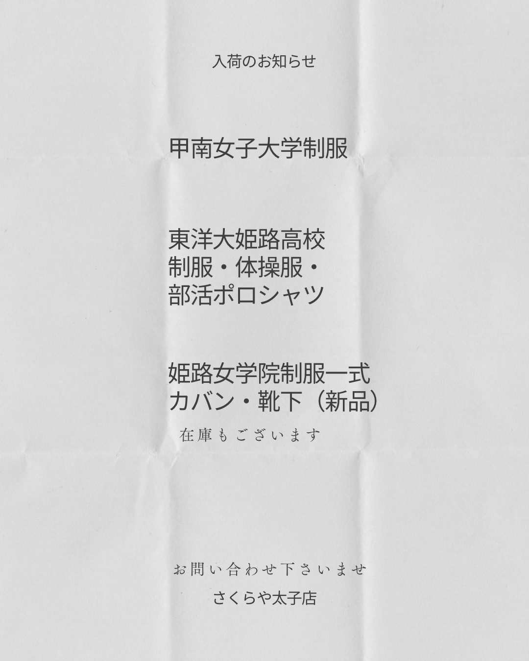 ご不要になられました、制服、体操服、学用品はございませんでしょうか⁇