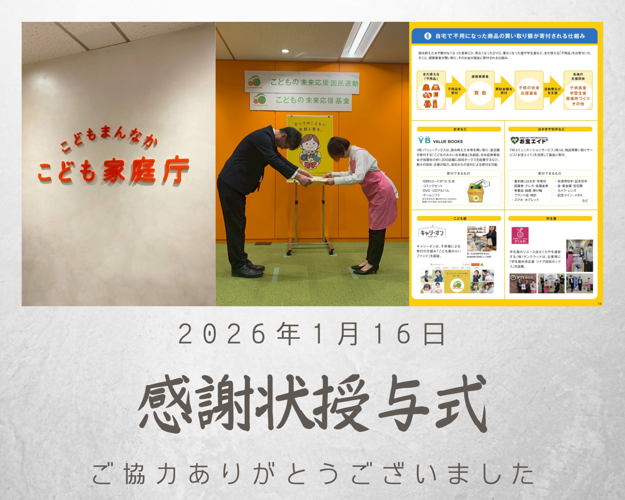 この度、2025年度、全国のさくらやでの内閣府こどもの未来応援国民基金へのご寄付が100万円を達成致しました。