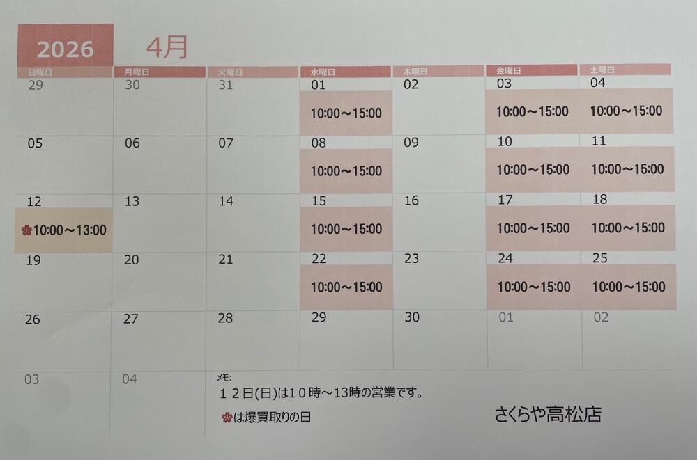 いつもさくらや高松店をご利用いただきありがとうございます🌸