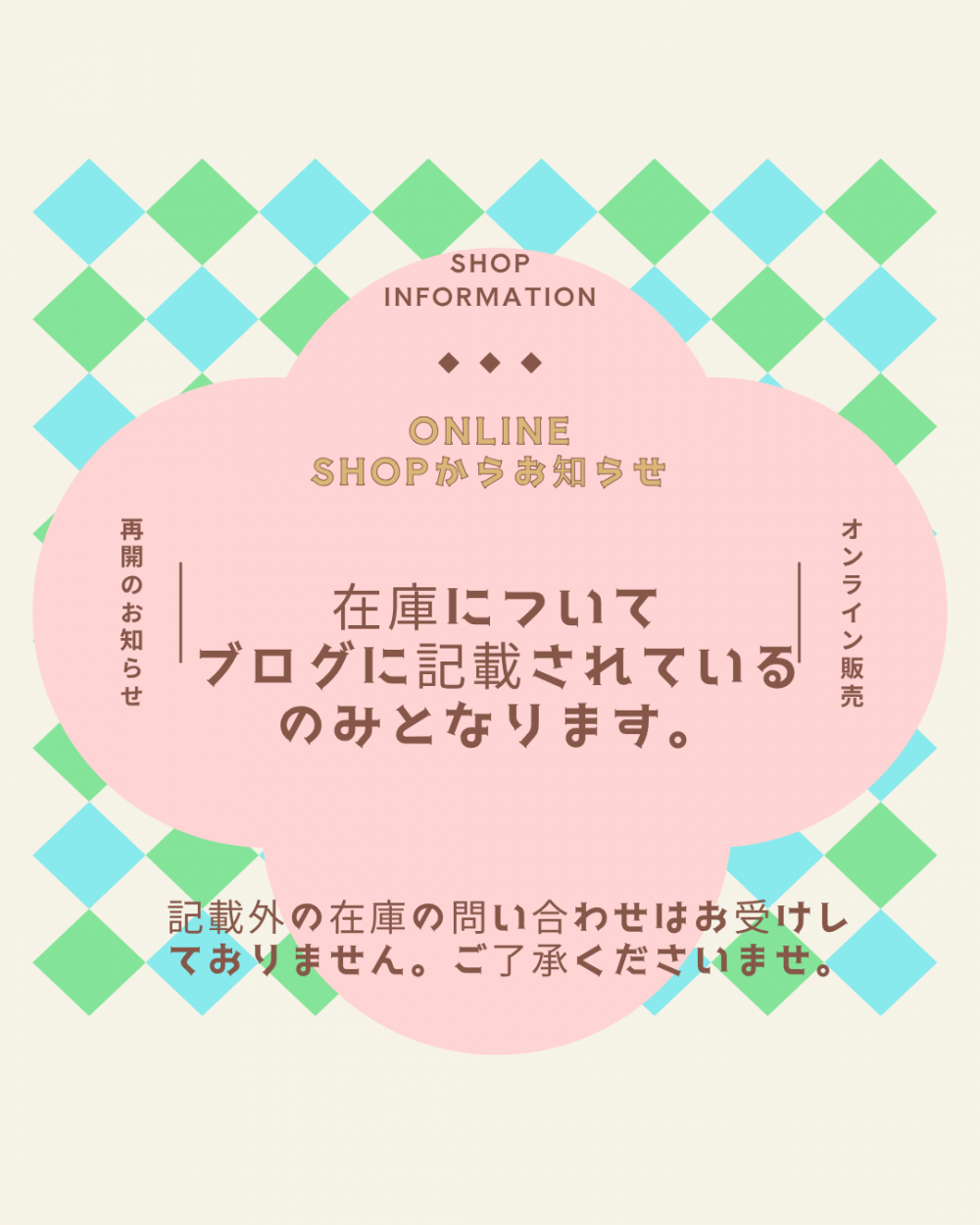通信販売の在庫情報となります。