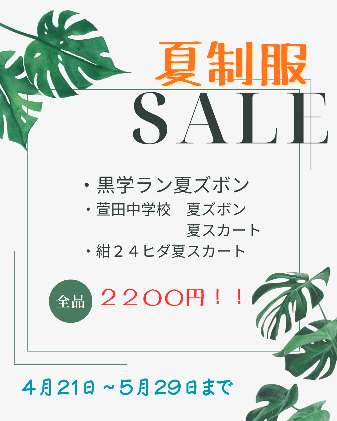 夏ズボン・夏スカートのセール!