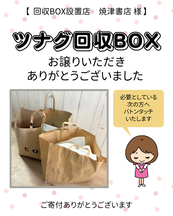 #さくらや#さくらや焼津店#ツナグ回収ボックス #焼津書店 #制服回収 学生服リユースショップ 制服買取り販売 焼津市 焼津駅 焼津駅前商店街 藤枝市子育て  入学準備 幼稚園準備 小学校準備 入園準備 リユース  学校用品リユース 学校用品引取り 学生服リユースショップさくらや焼津店